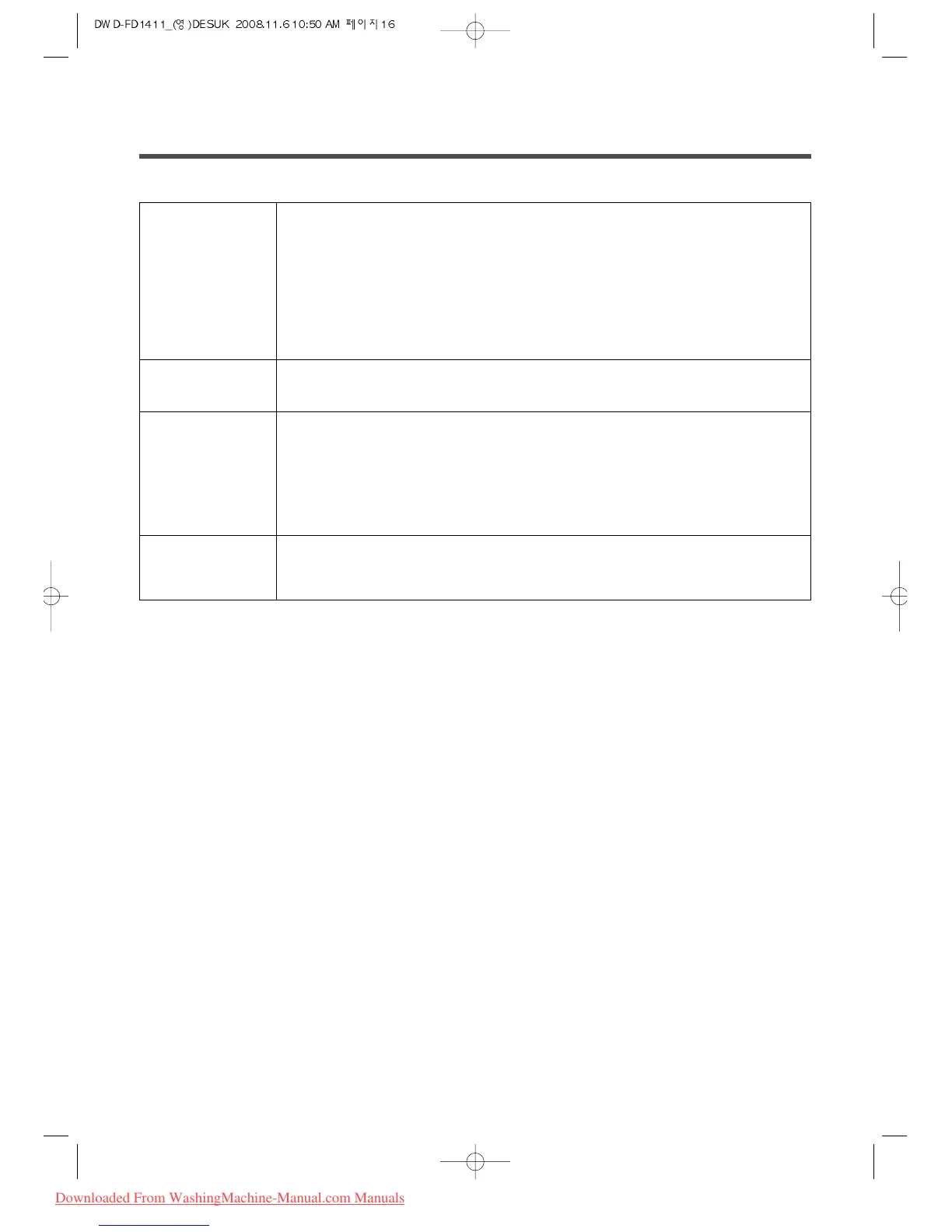 • 1000rpm and 1400rpm of spin velocity is NOT selectable with the Wool programme in order to