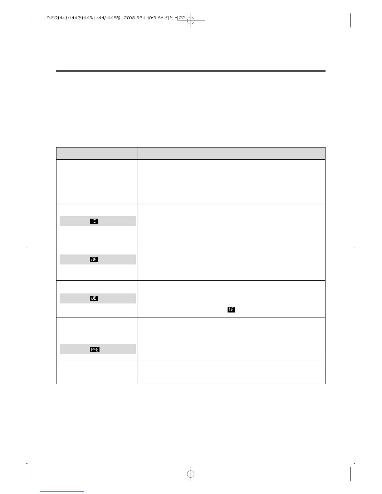 If PFE error mode was displayed on the control part, in order to solve this problem, first turn off the