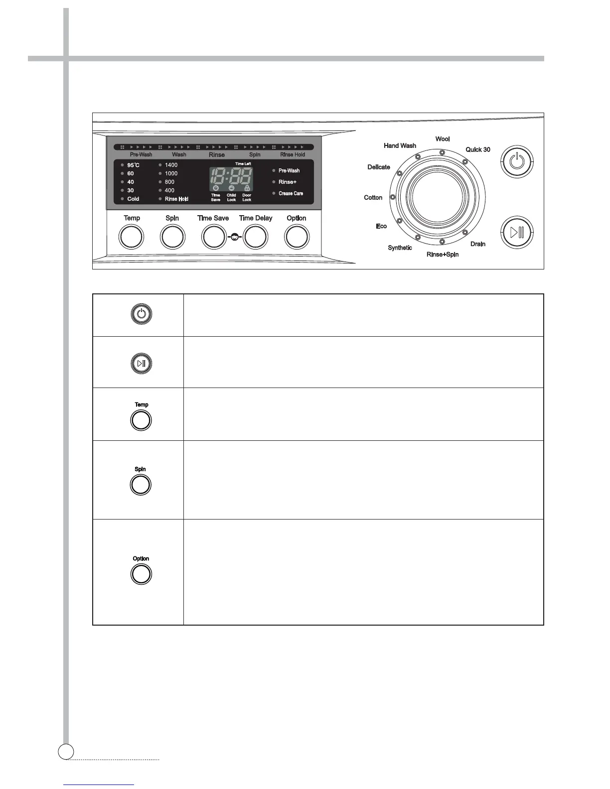 Rinse Hold This function leaves clothes in the machine suspended in the water