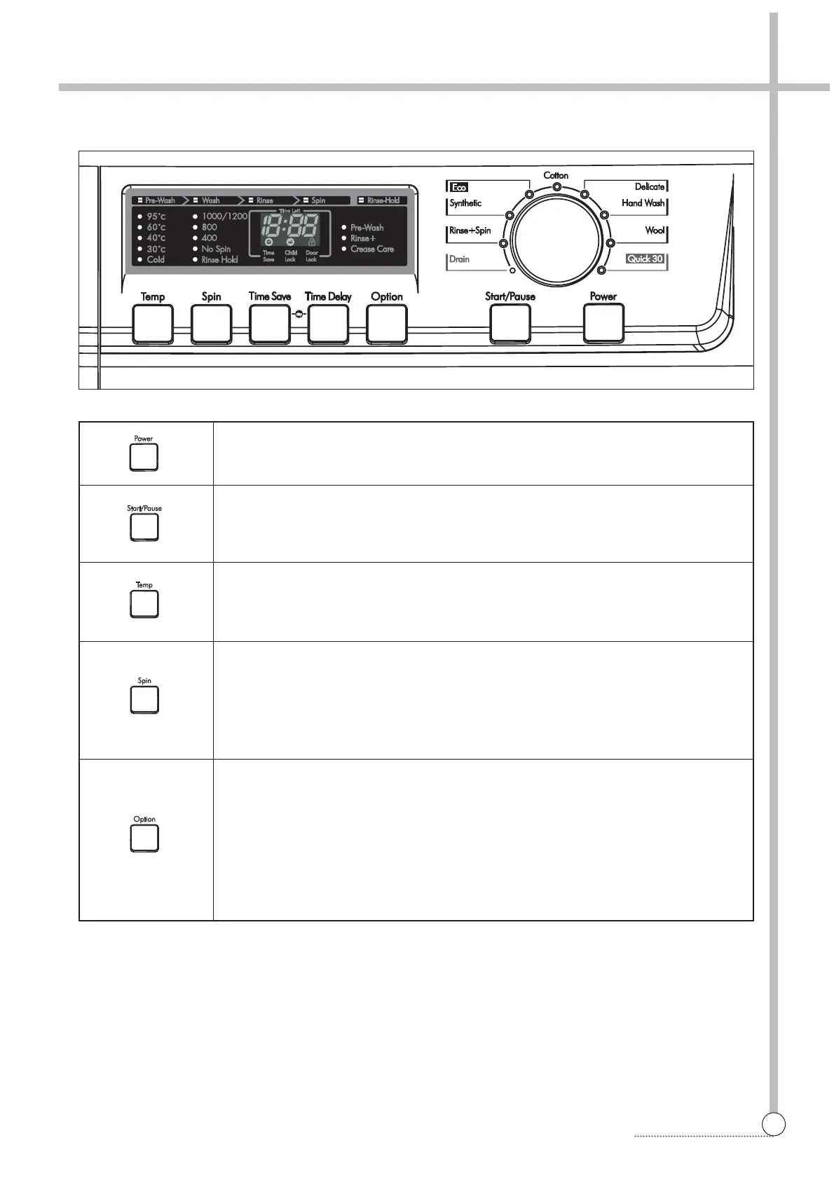 Rinse Hold This function leaves clothes in the machine suspended in the water after