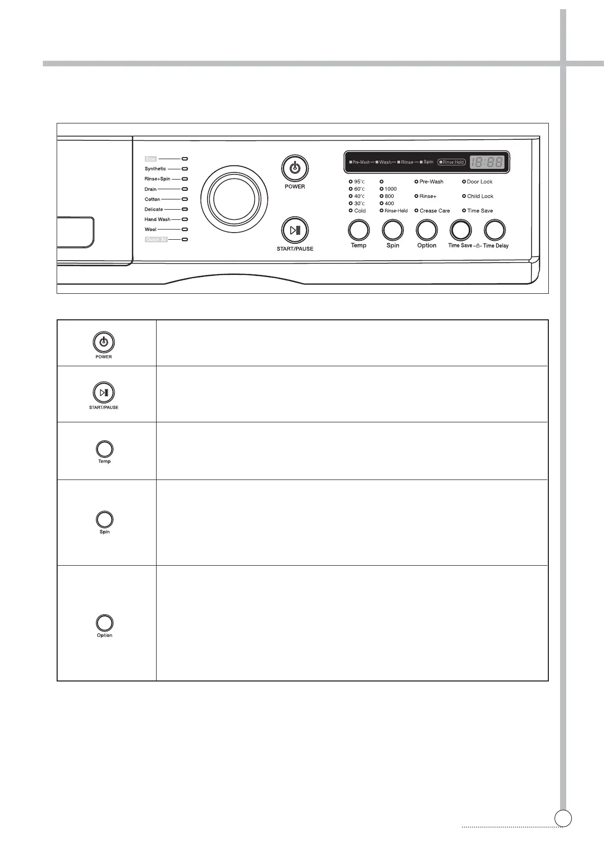 Rinse Hold This function leaves clothes in the machine suspended in the water