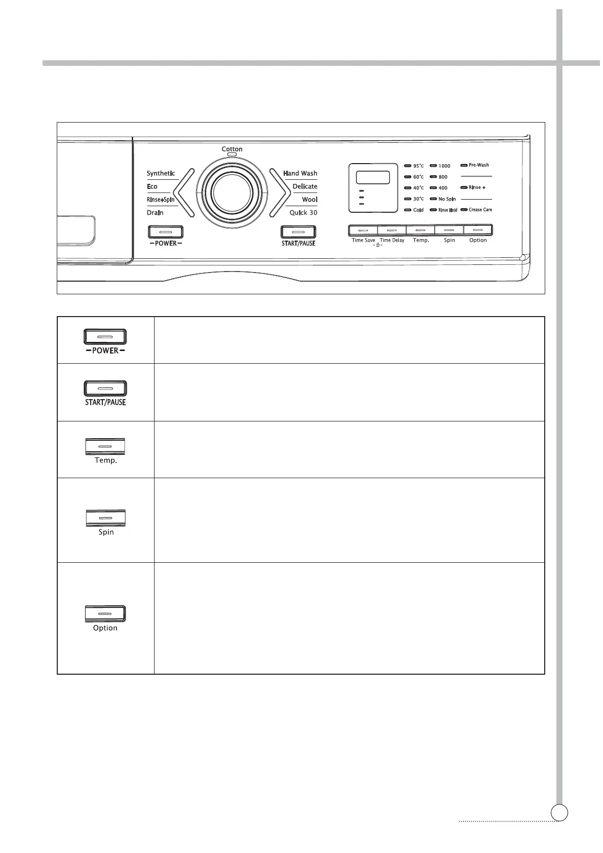 Rinse Hold This function leaves clothes in the machine suspended in the water