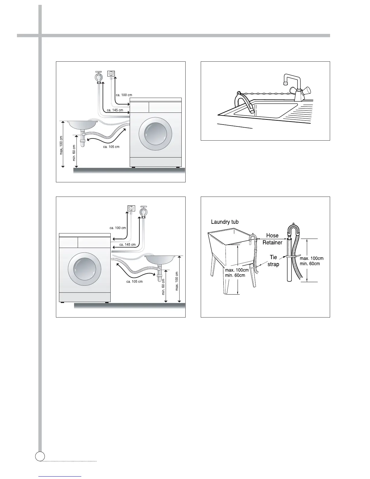 • The drain hose should not be placed higher than
