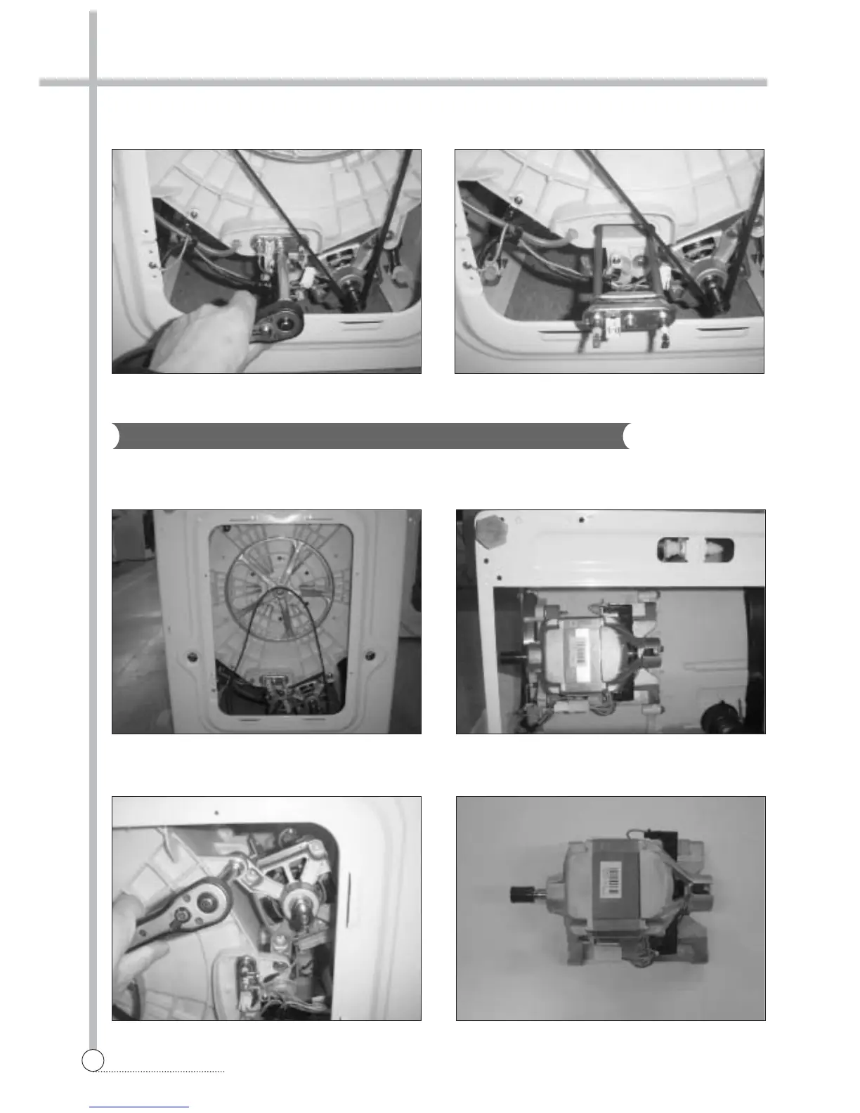 1) Remove the belt from the pulley. 2) Lay the right side of the washer on the floor,