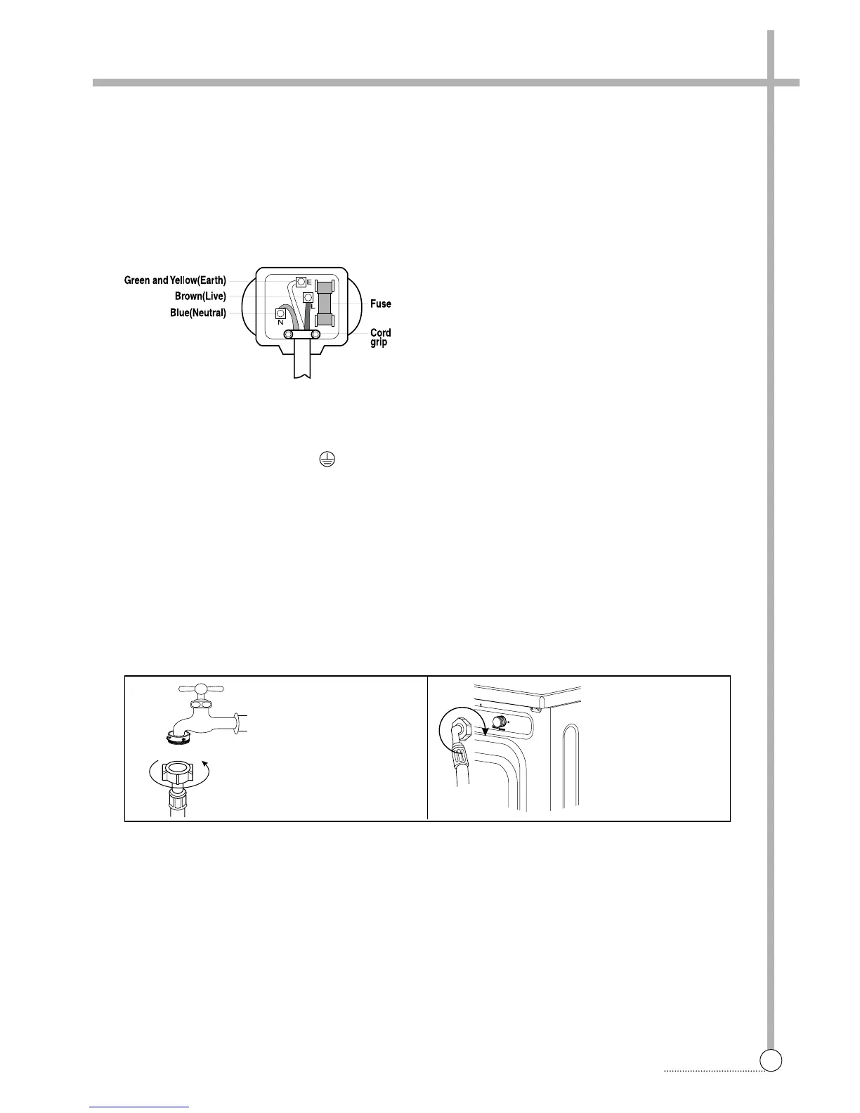 • In case of only one water inlet valve, connect the inlet hose to the cold water tap.
