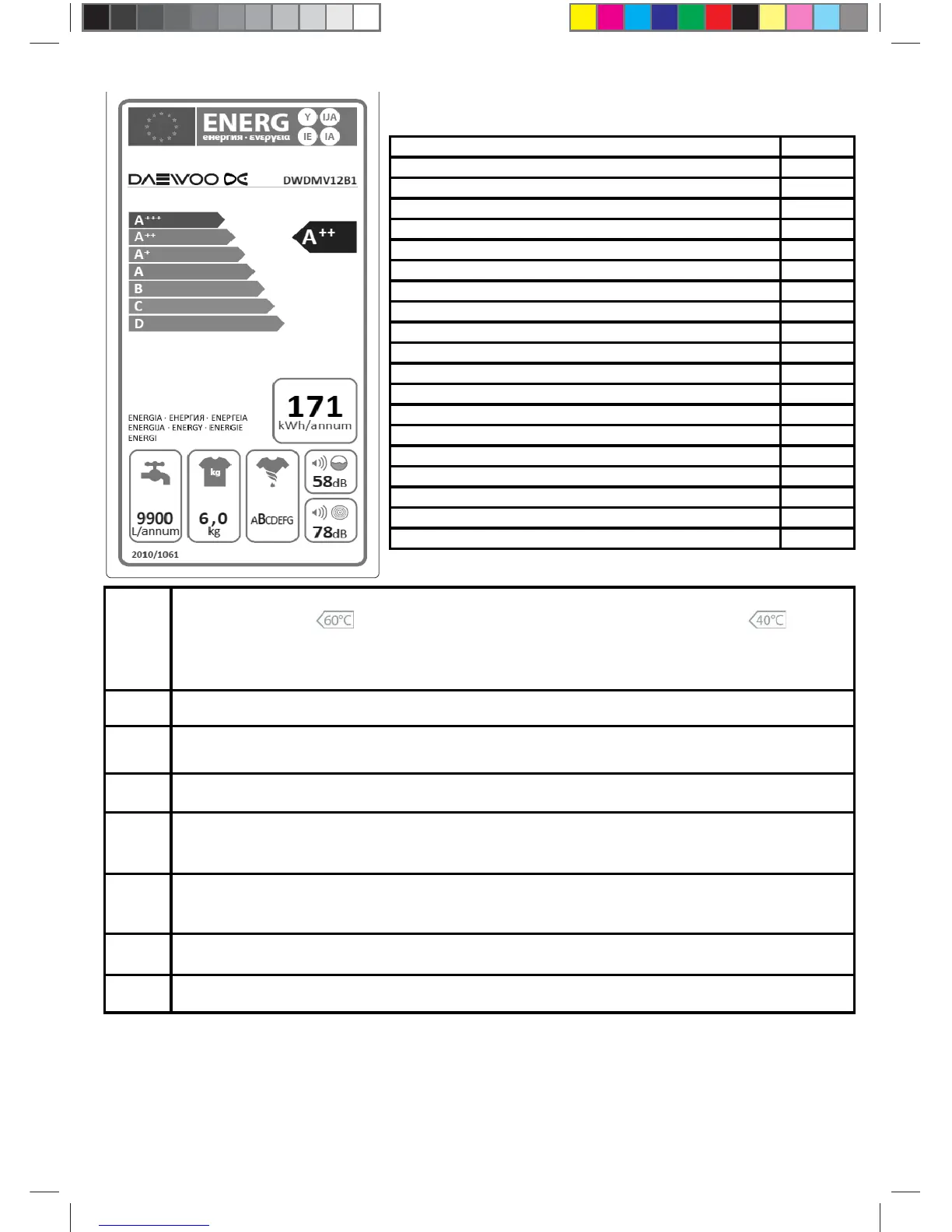 Based on test results of standard 60 ° C cotton programme at full load and partial load, and standard 40 ° C