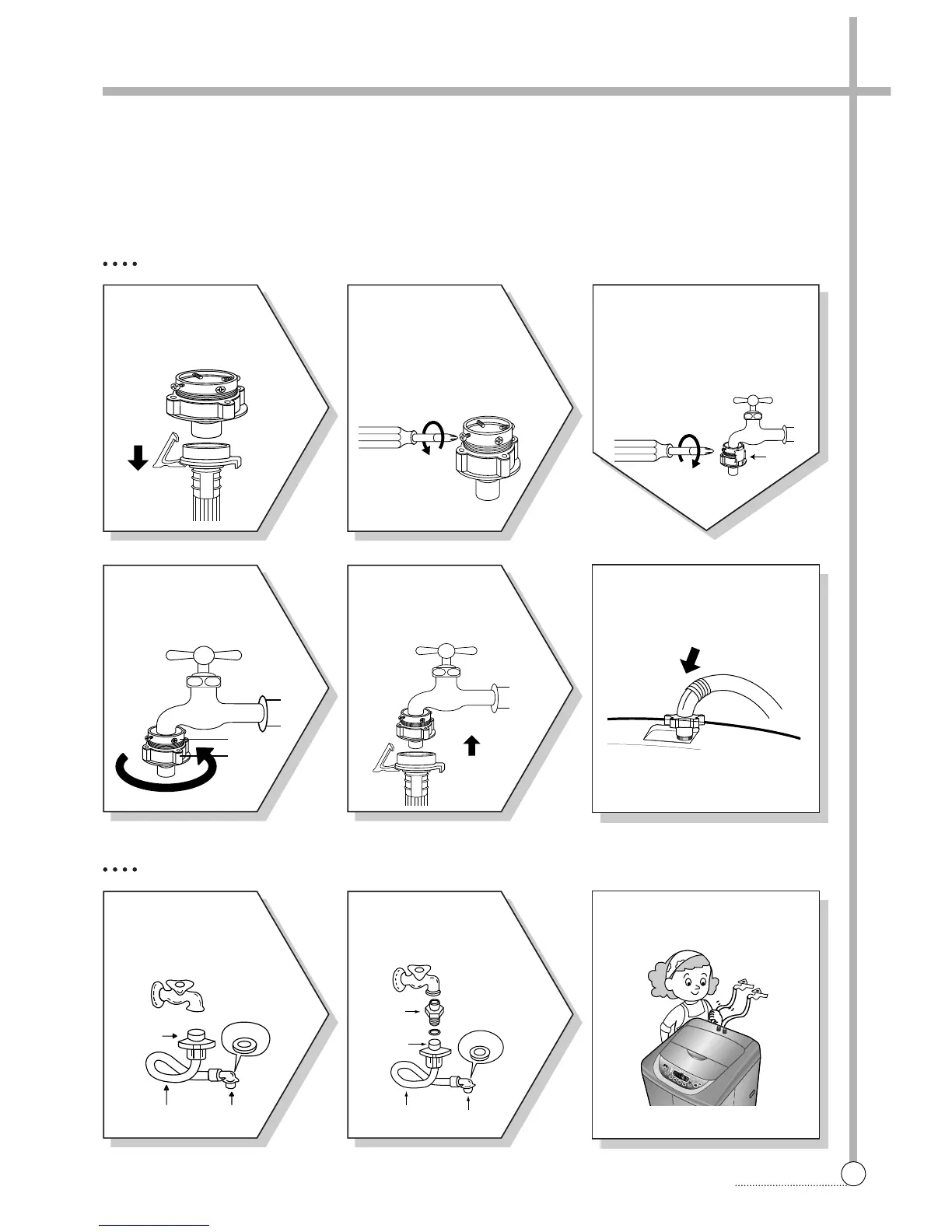 In using only one water tap or in case of attached one water inlet valve, connect the inlet hose to the cold water inlet