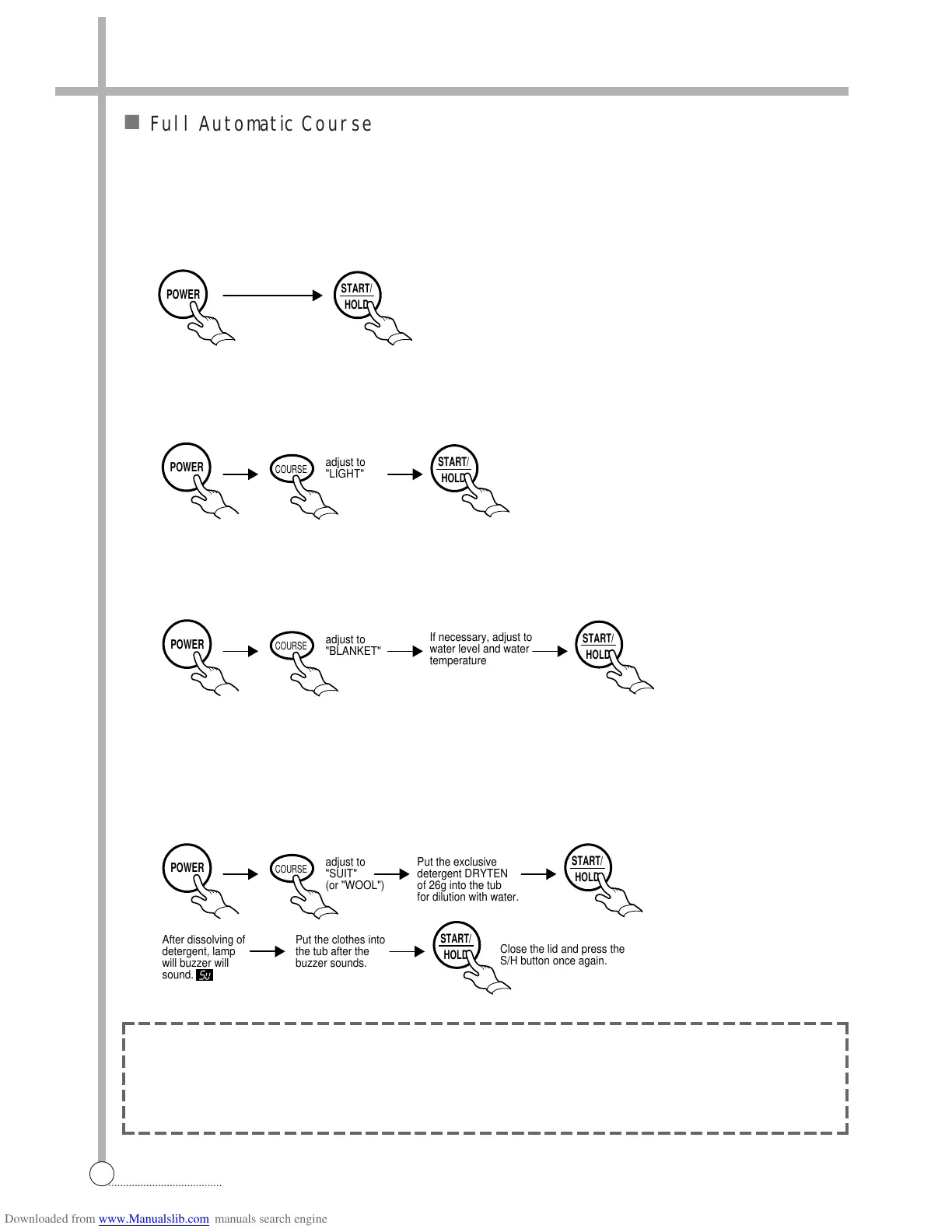 • Do not wash general-electric blanket absolutely (4kg’s limitation for one-time-wash). Procedure to press the button;