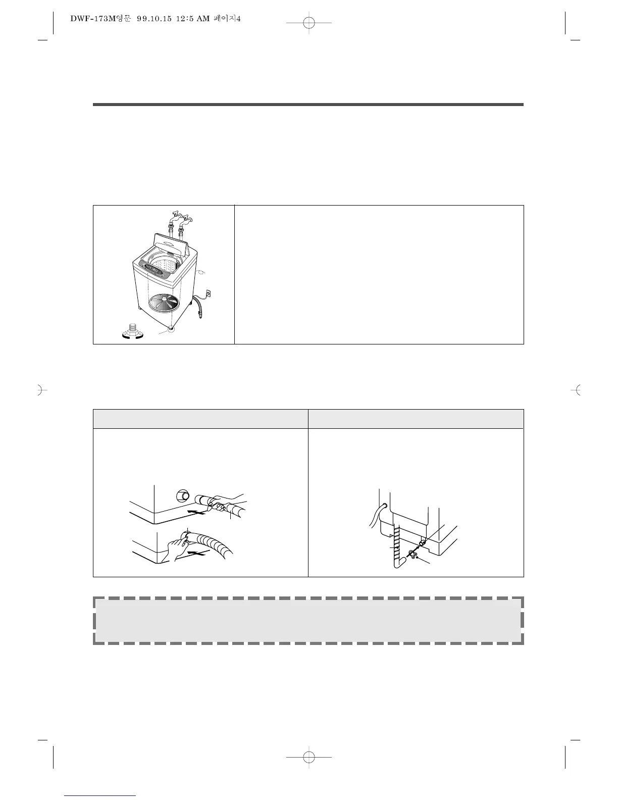 •Install the washer on the horizontal solid floor.