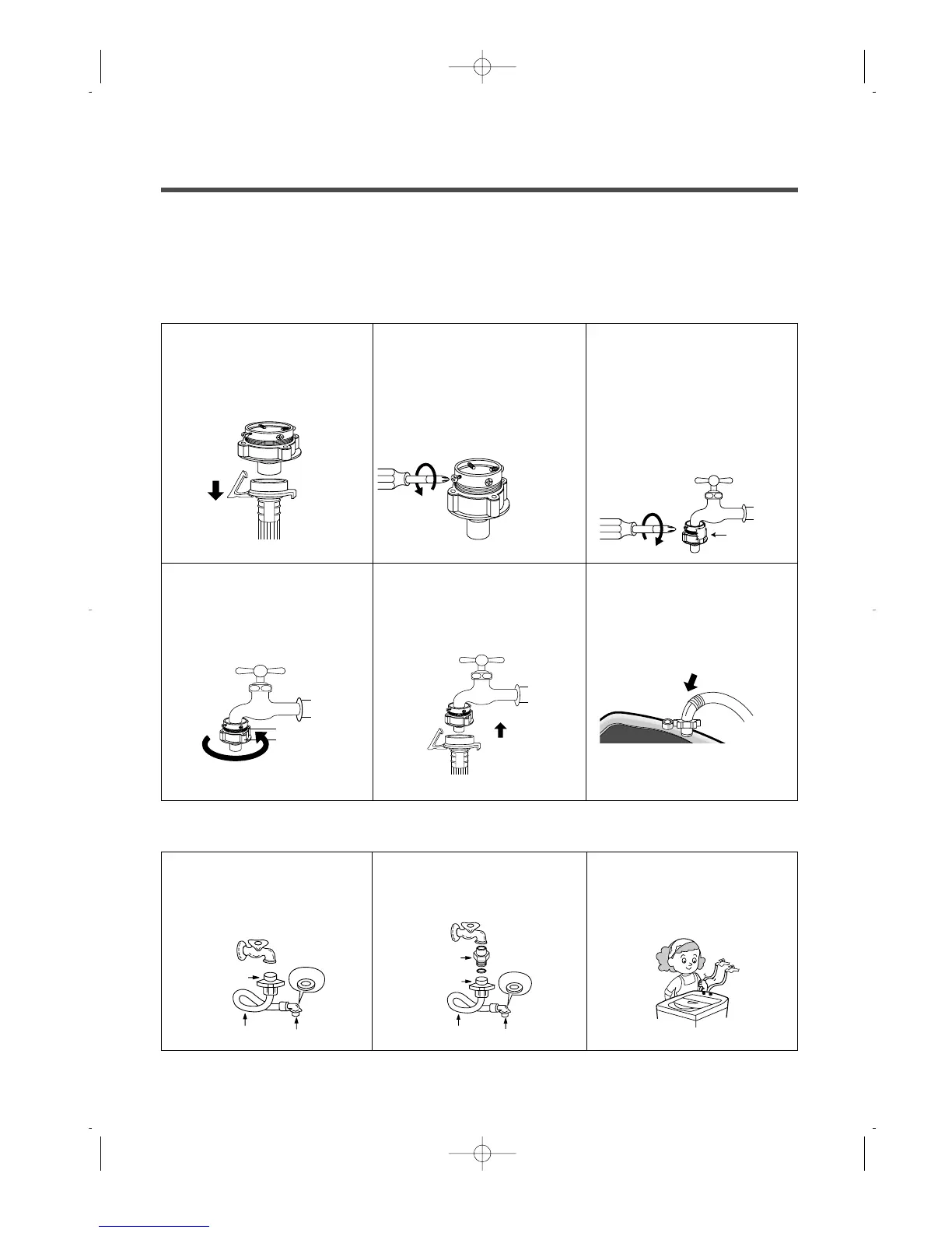 In using only one water tap or in case of attached one water inlet valve, connect the