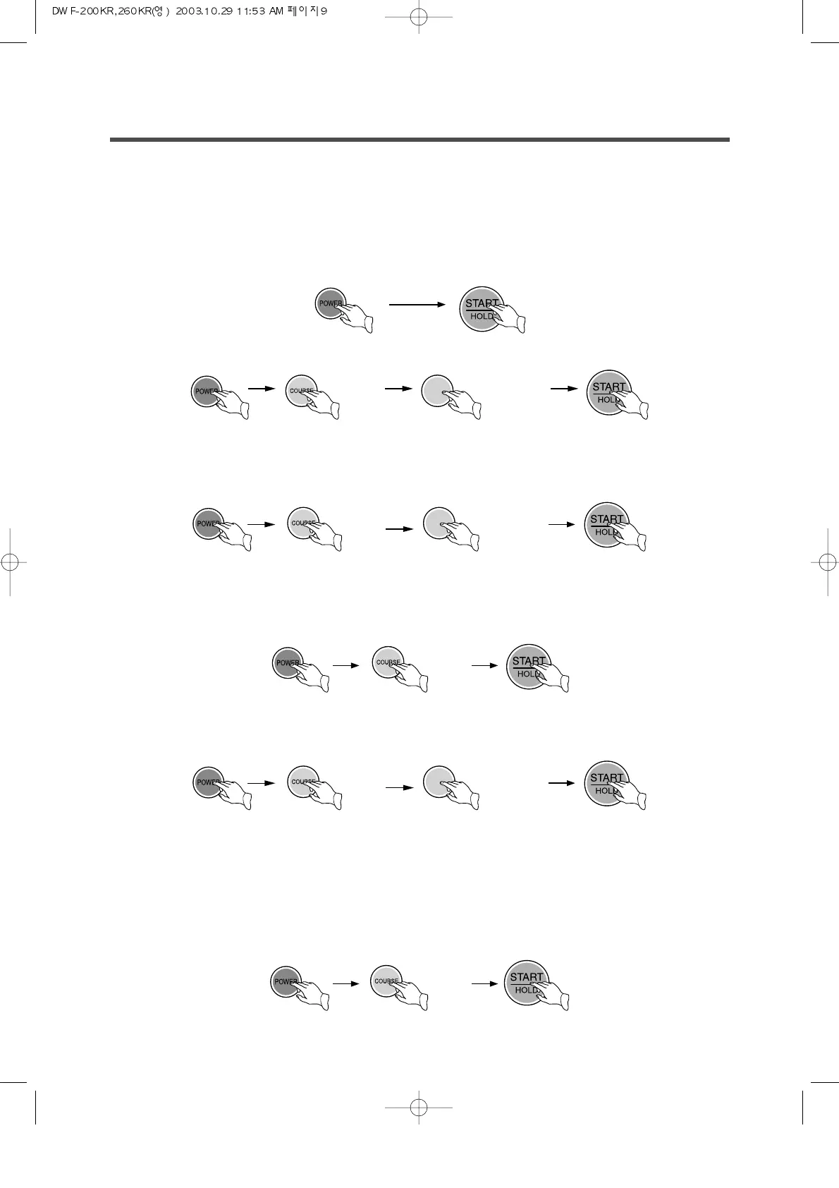 • This selection is effective for washing light or less dirty wash. Procedure to press the button;