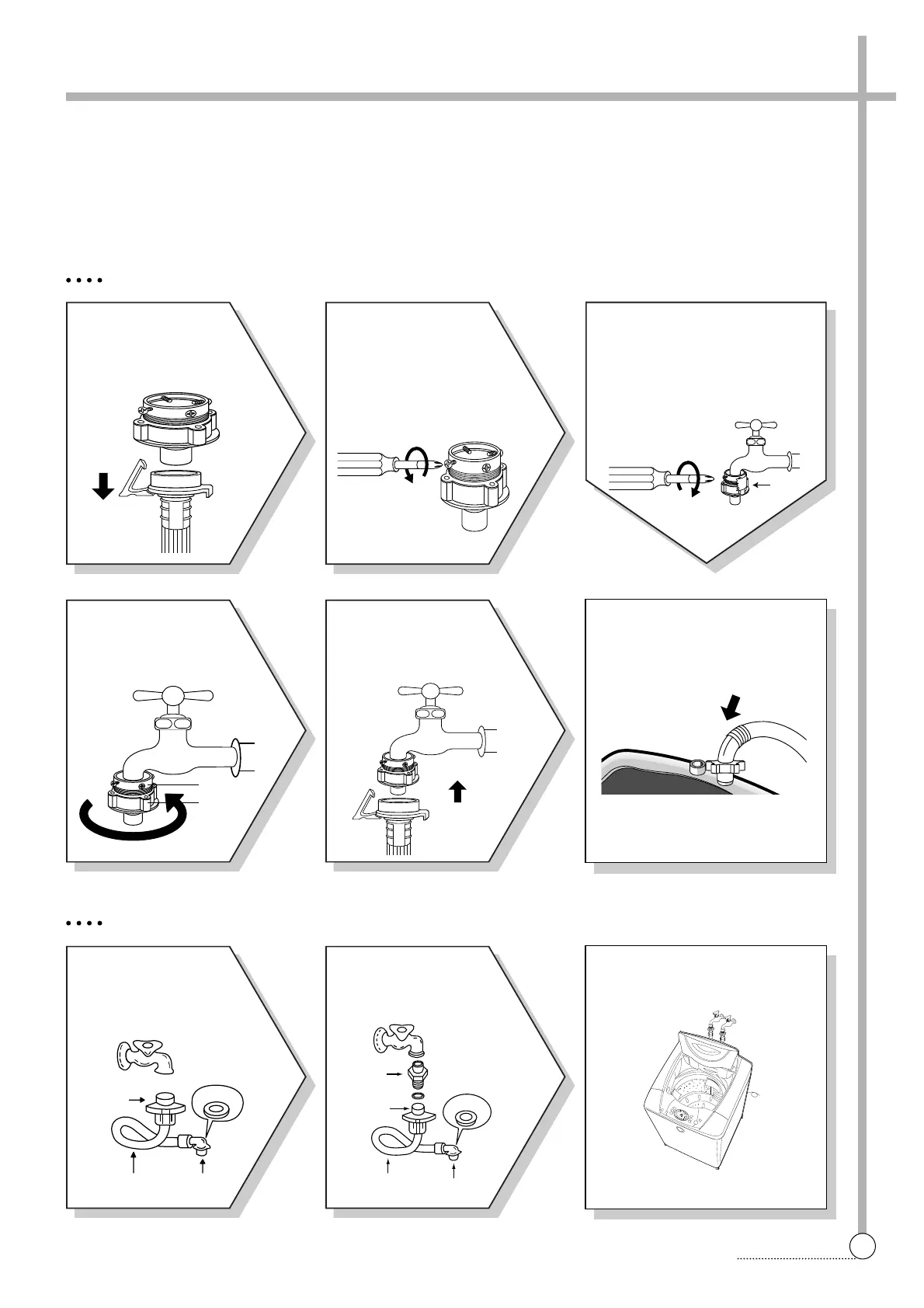 In using only one water tap or in case of attached one water inlet valve, connect the inlet hose to the cold water inlet