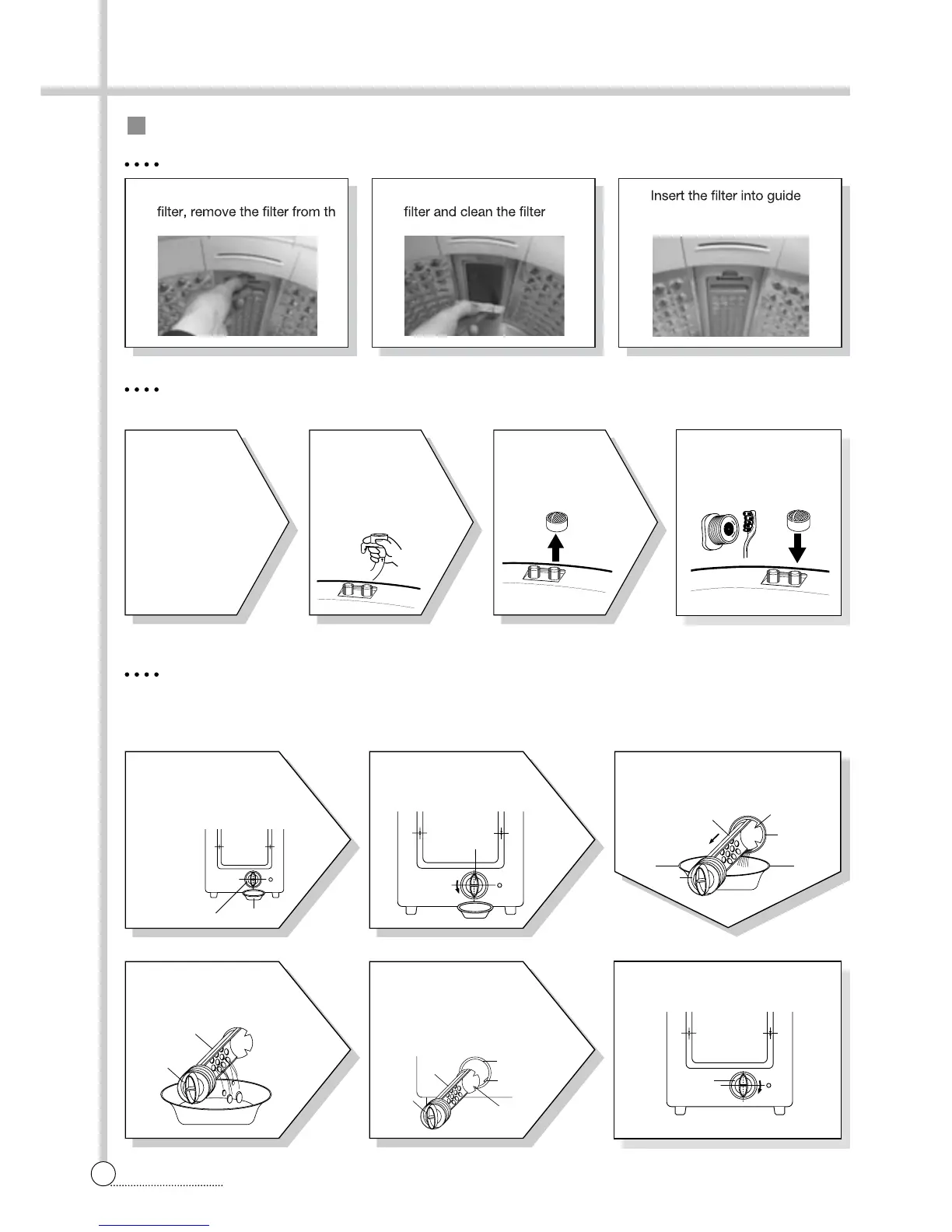 • Clean the filter when water leaks from, the water inlet.