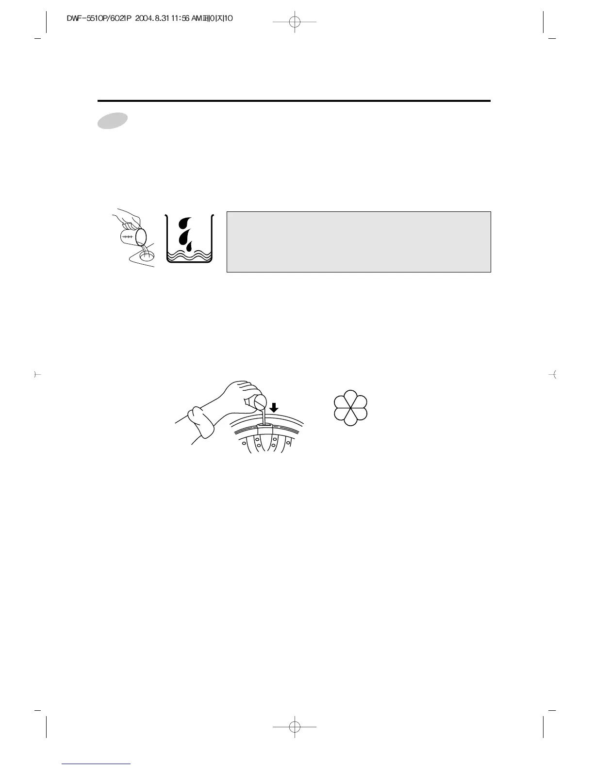 • Do not let bleach splash, drip, or run down into washer basket.