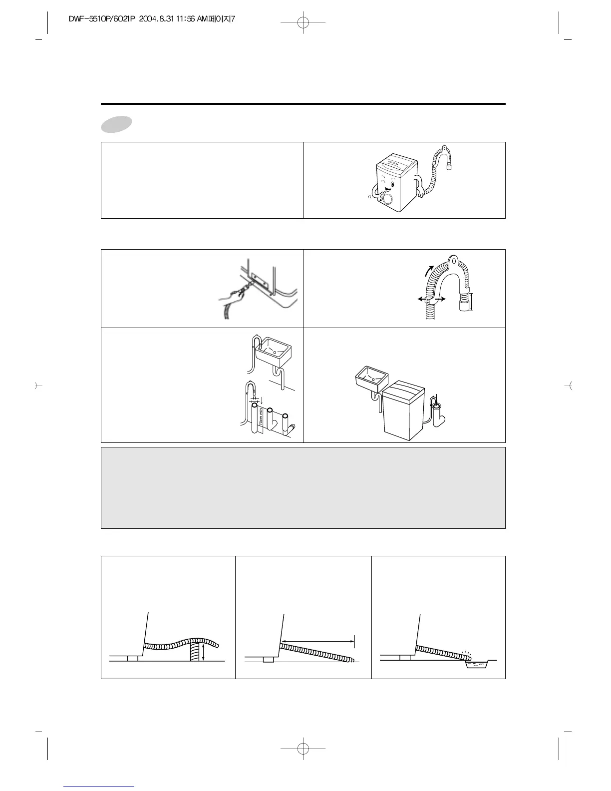 1. Let the highest point of the drain hose be more than 1m above the floor. If not so, the water in the washer could