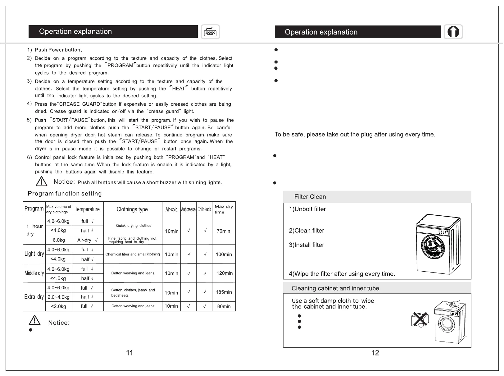The few clothes below 2. 0kg shall be selected with " extra dry"program and "full"