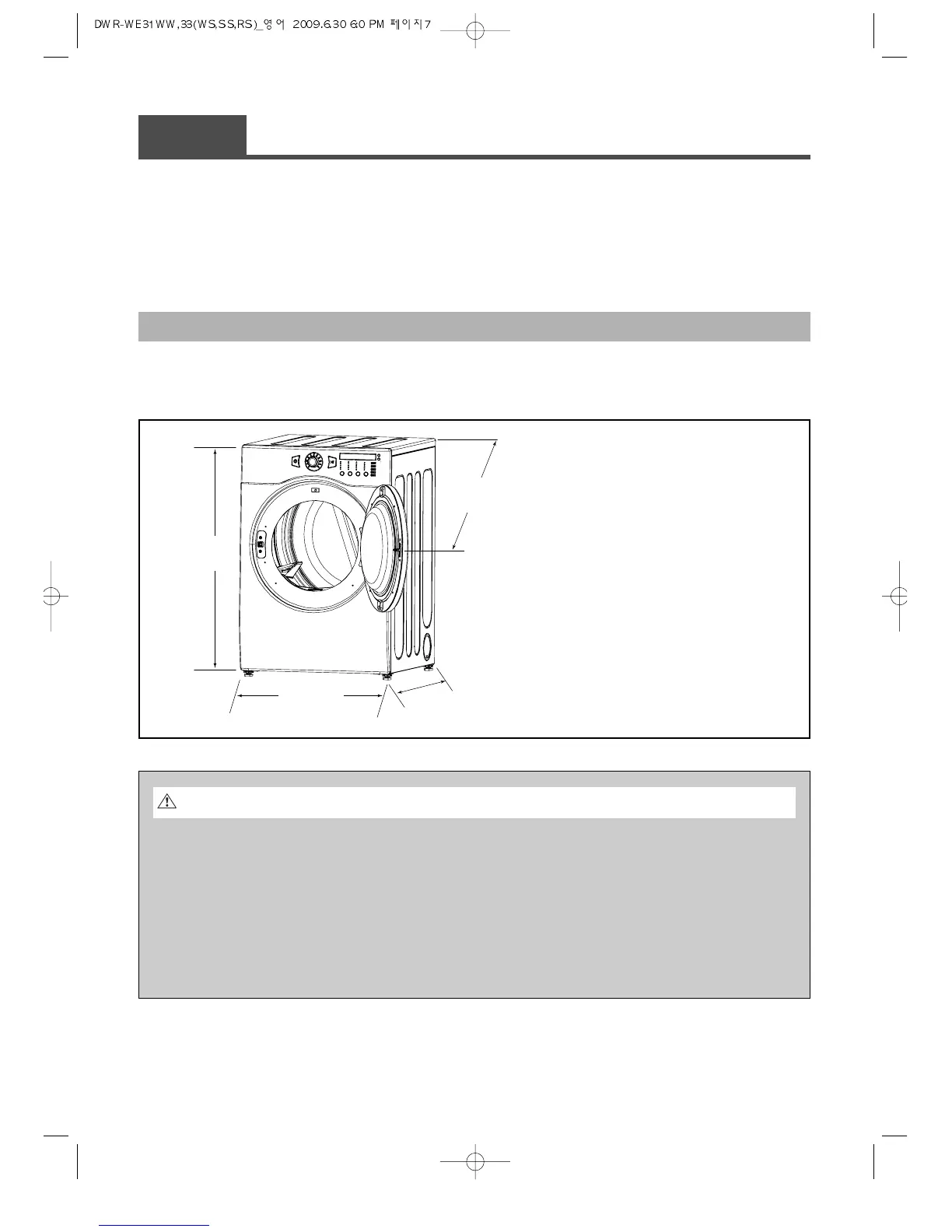 Place the dryer in the desired location and make sure that it has the required clearances shown below.