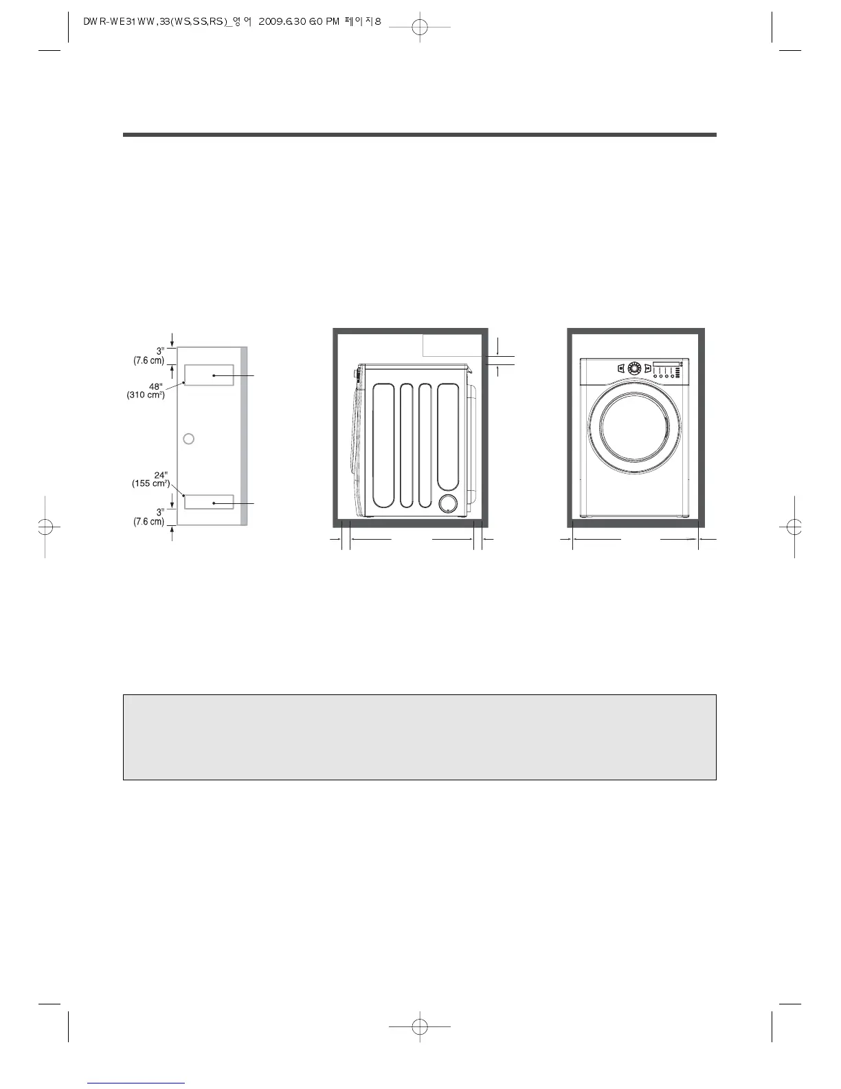 from left to right or front to back should not exceed 2.5 cm (1 inch). If the dryer is not level, and if the slope exceeds