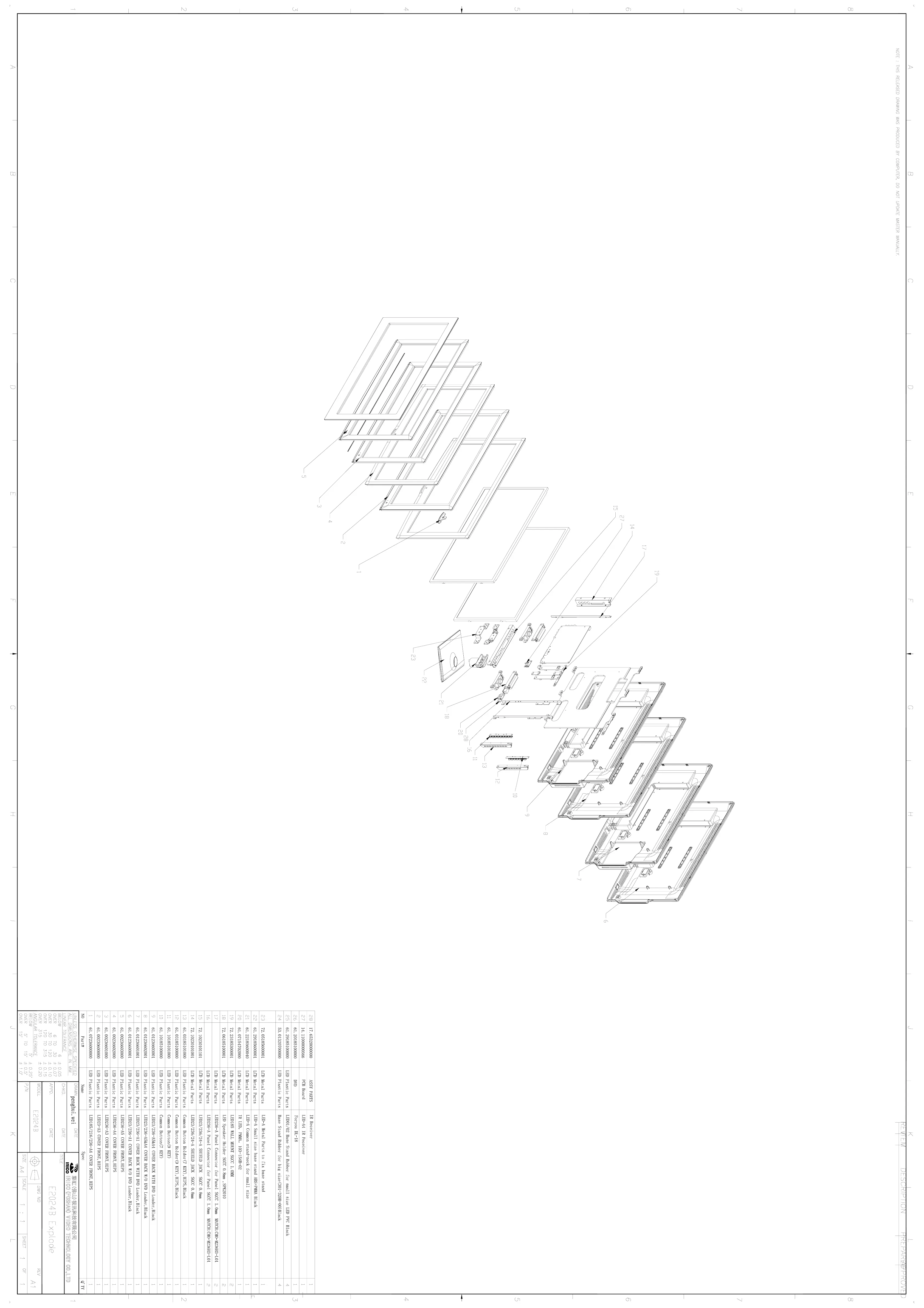 Daewoo E2019B - Exploded View; E2019 B;22 B;24 B Exploded View