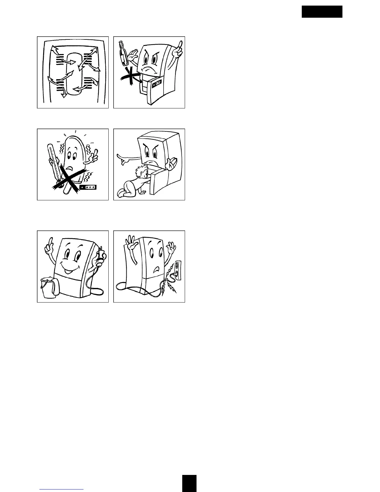 Keep air vents open. No glass bottles in the freezer