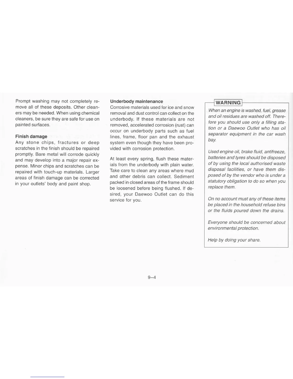 ials from the underbody with plain water.