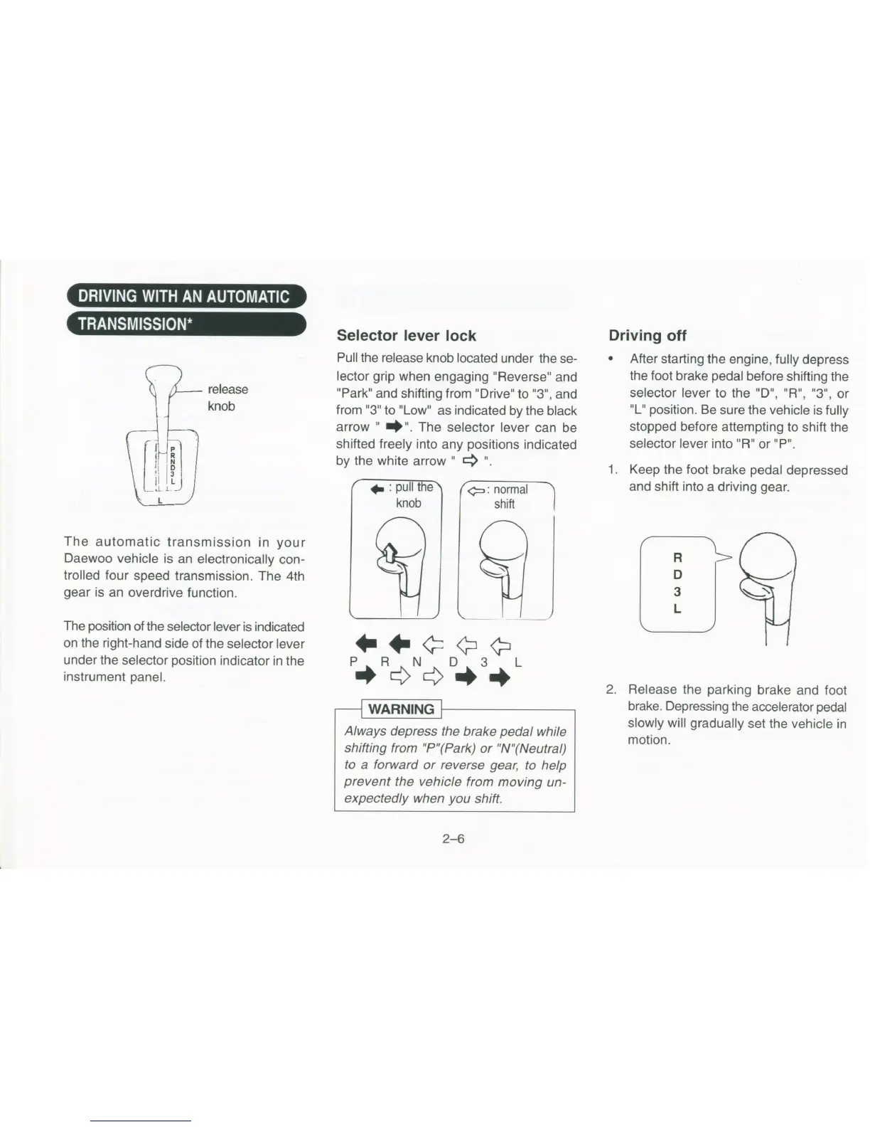 arrow" "". The selector lever can be