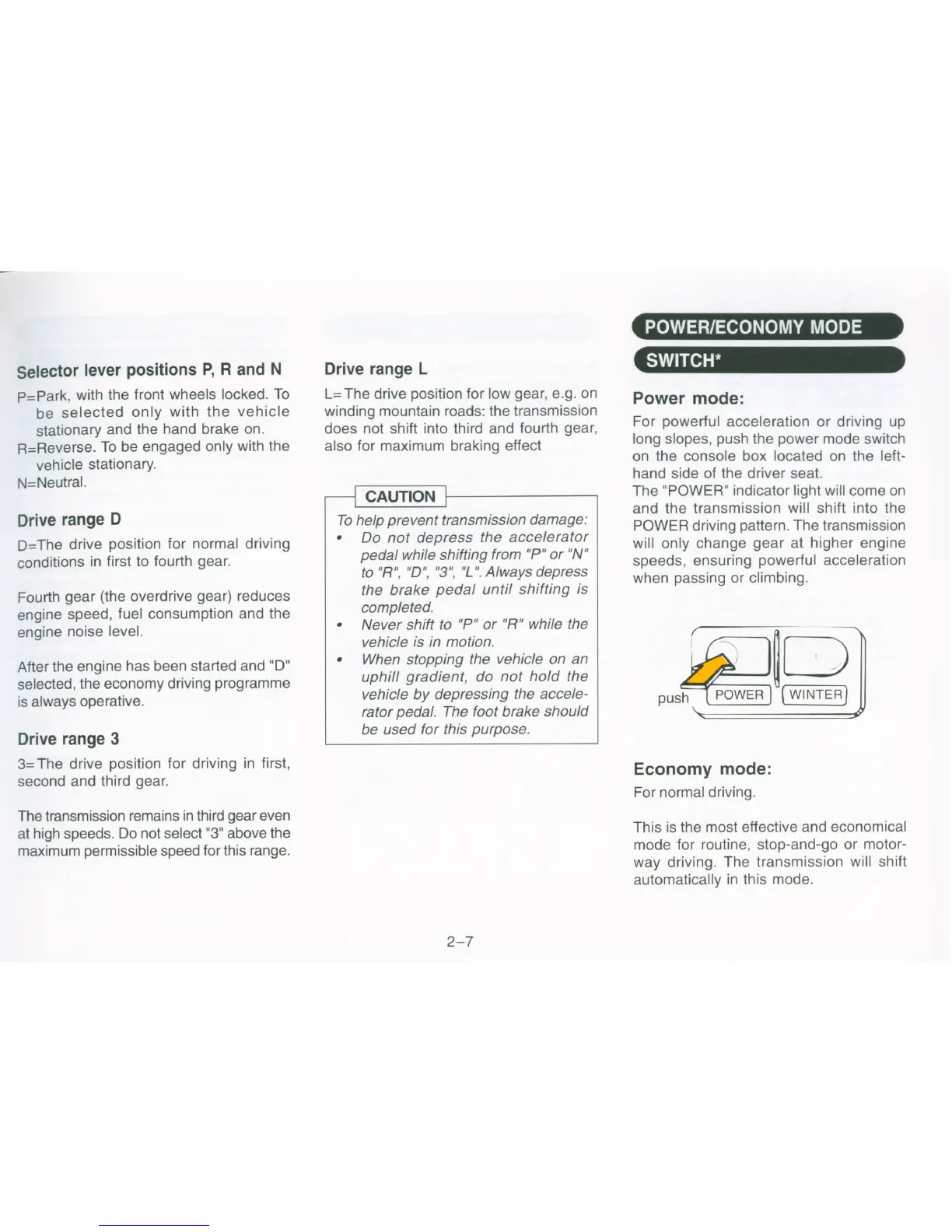 Selector lever positions P, Rand N