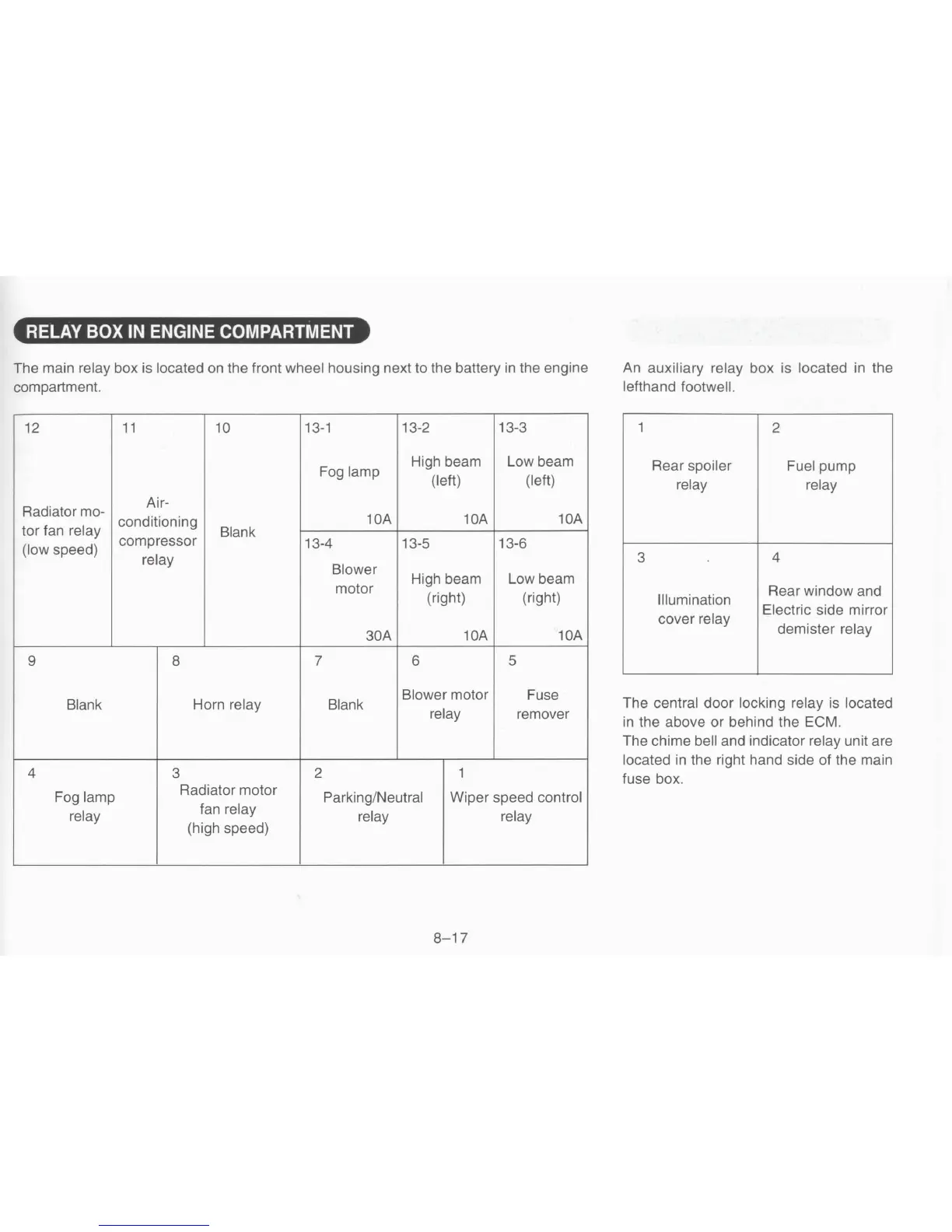The main relay box is located on the front wheel housing next to the battery in the engine