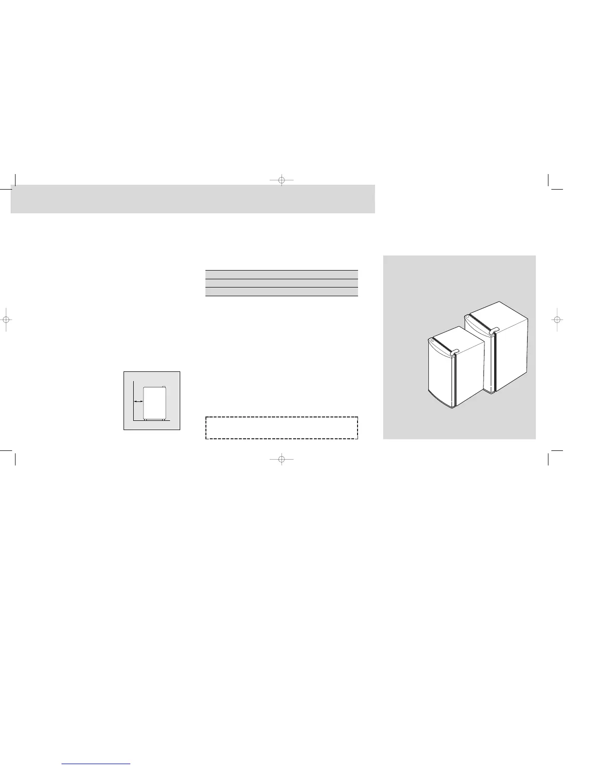 § Allow 5 inches of space between the refrigerator’s side and the wall.