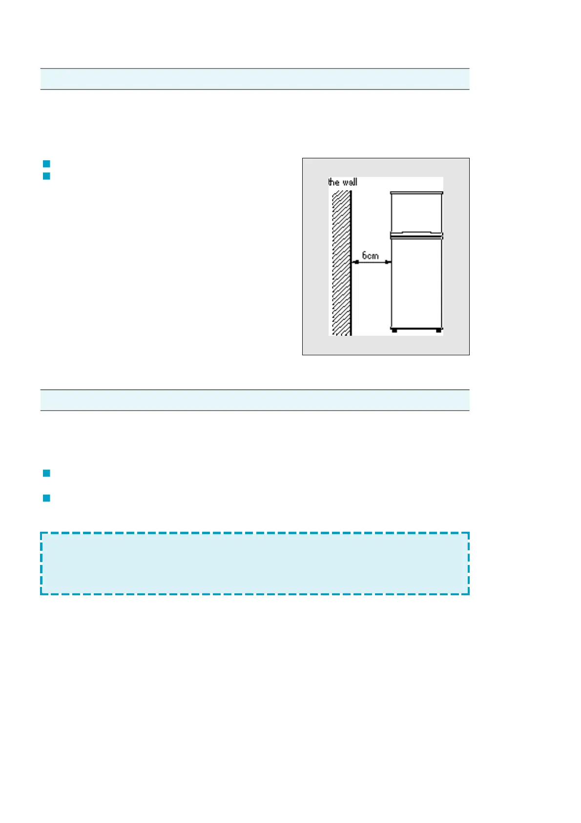 Install the refri g e r ator in a convenient location away from extreme heat and cold. Allow at least 6cm