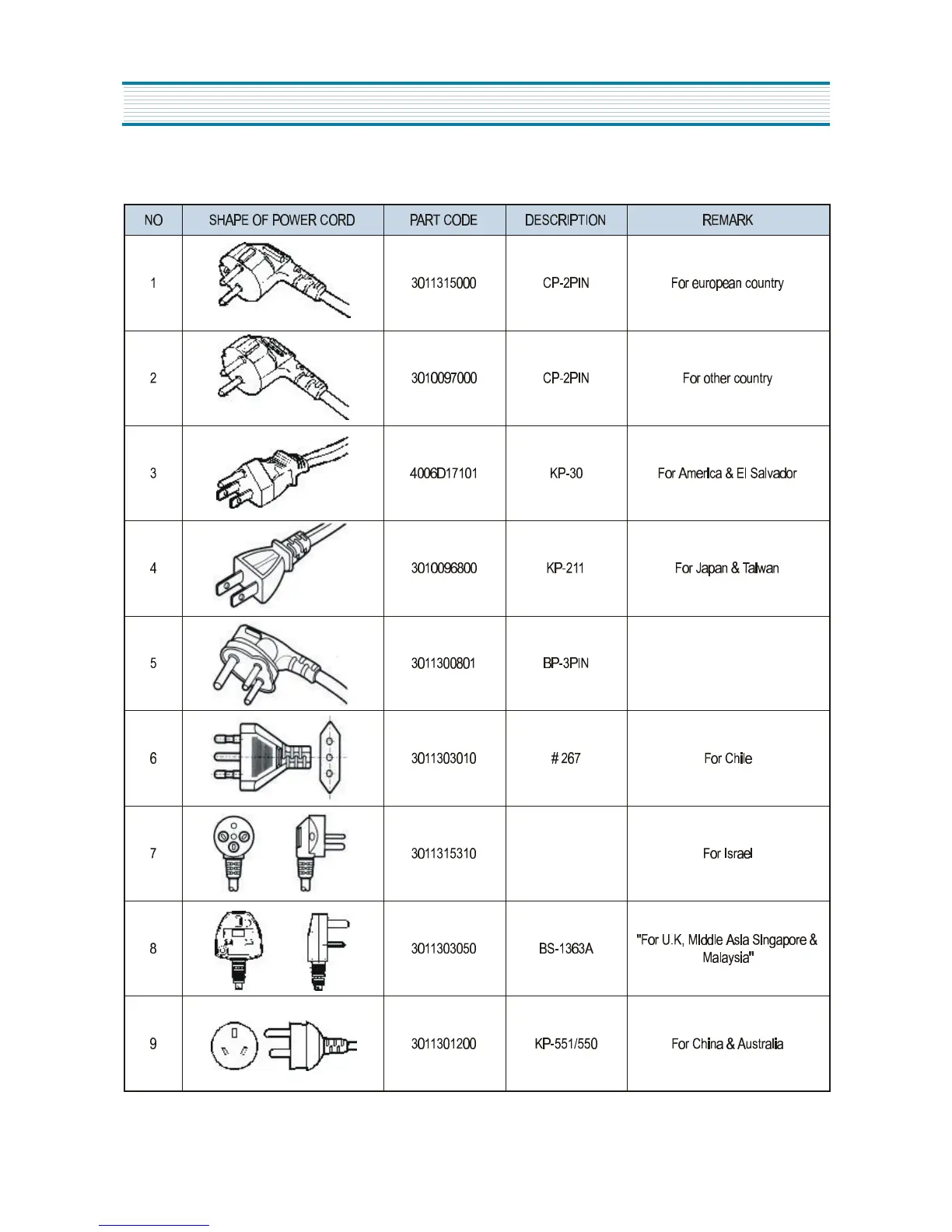 Daewoo FR-360 - Power Cord