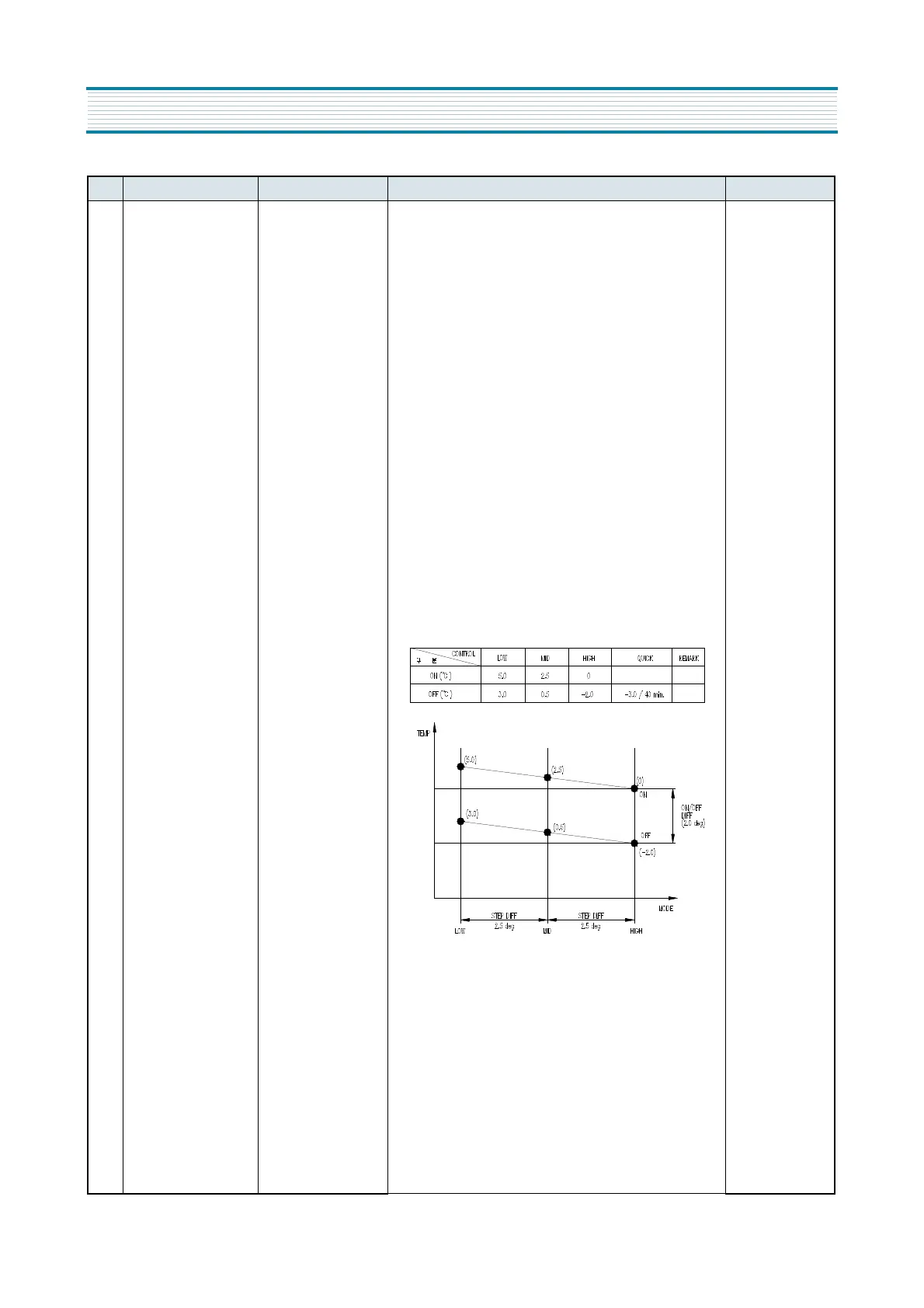 2. ON/OFF point of each control mode