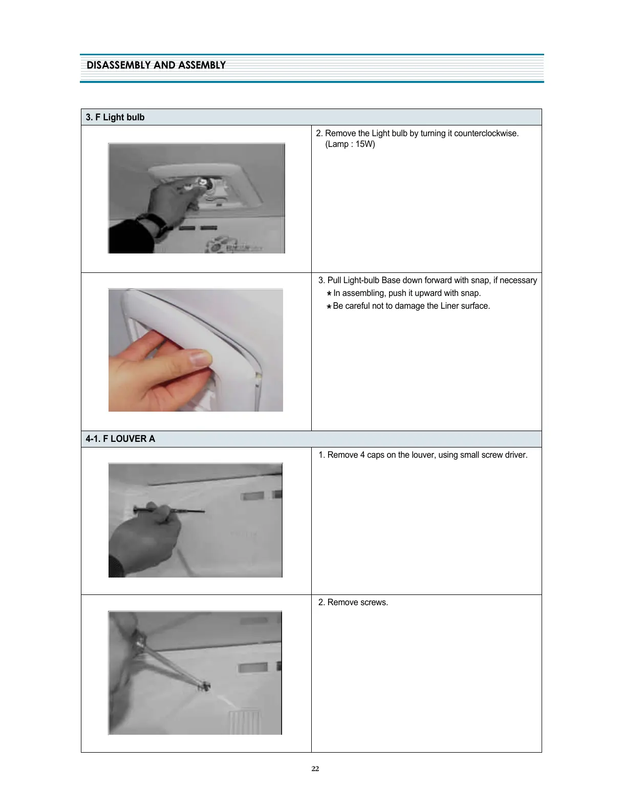 1. Remove 4 caps on the louver, using small screw driver.