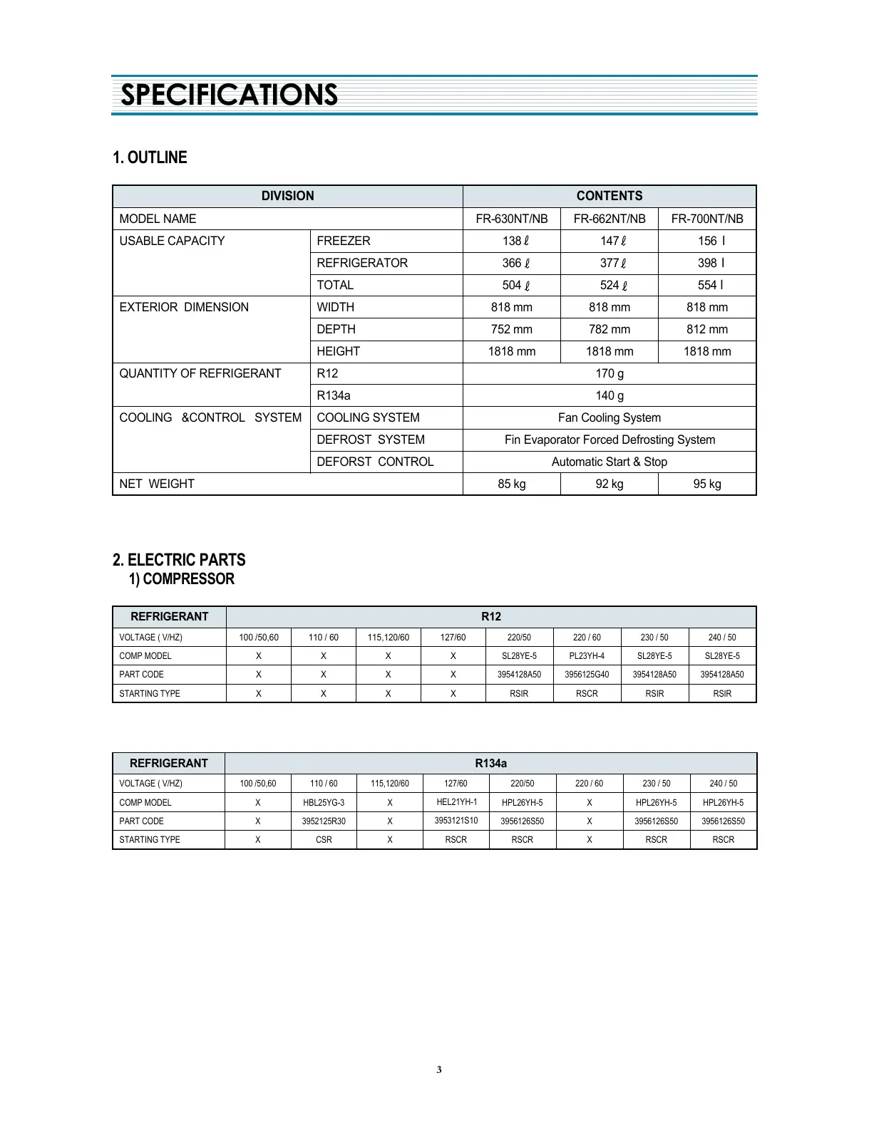 MODEL NAME FR-630NT/NB FR-662NT/NB FR-700NT/NB