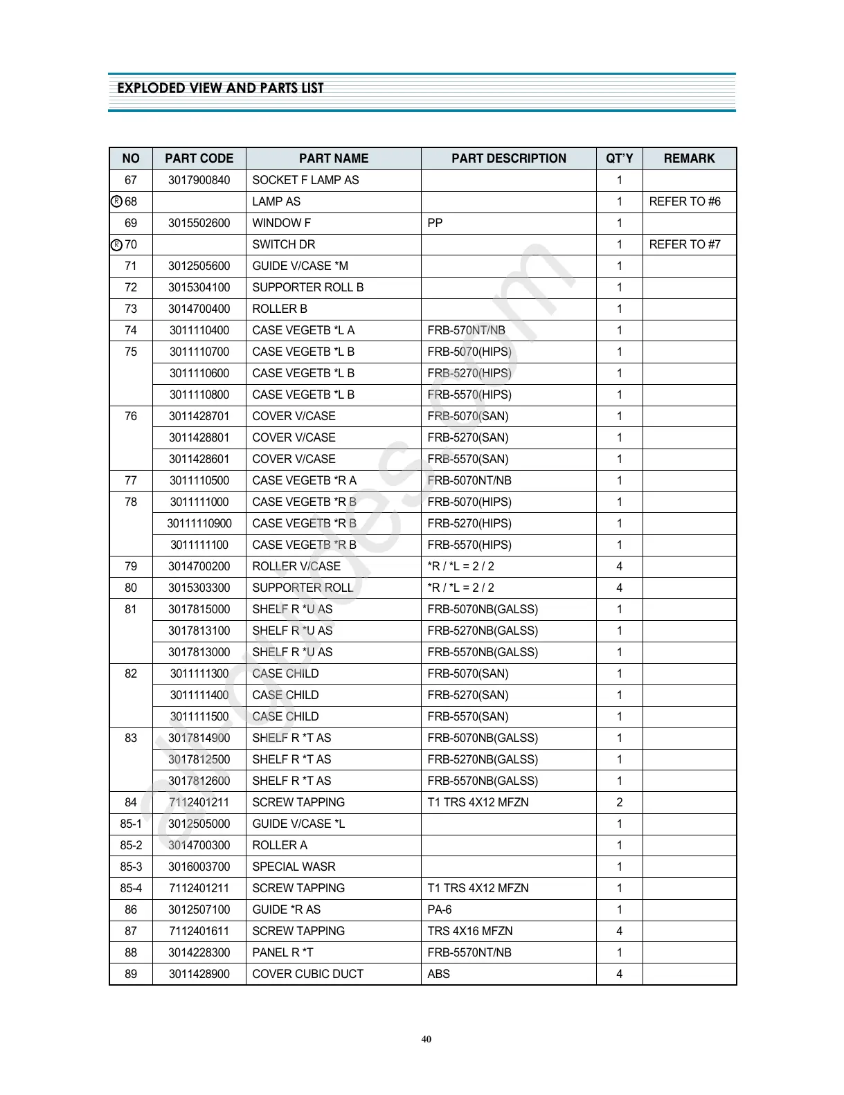 NO PART CODE PART NAME PART DESCRIPTION QT’Y REMARK