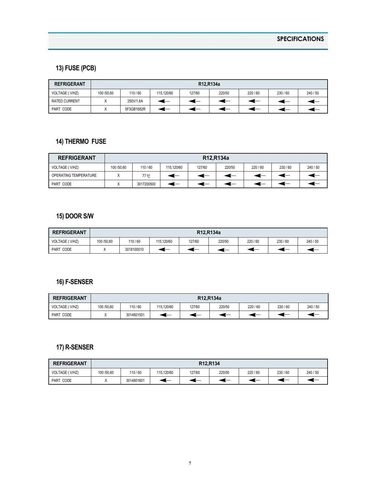 VOLTAGE ( V/HZ) 100 /50,60 110 / 60 115,120/60 127/60 220/50 220 / 60 230 / 60 240 / 50