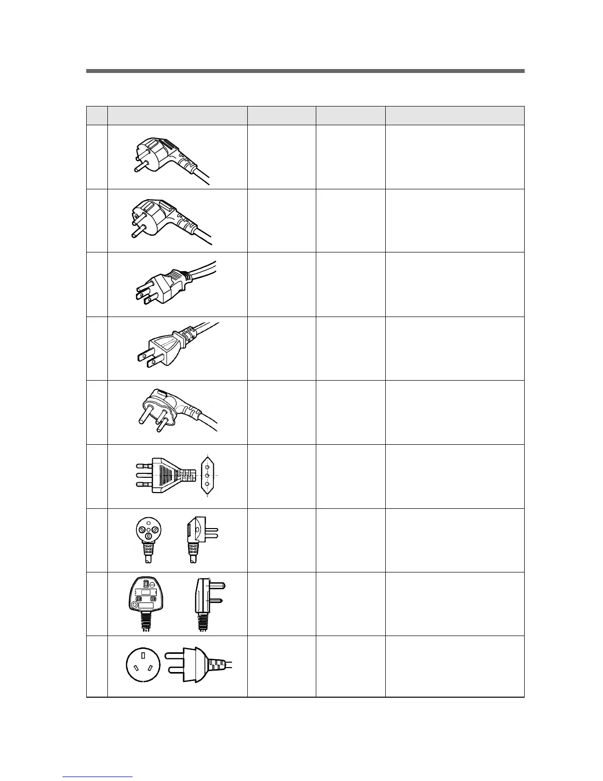 NO SHAPE OF POWER CORD PART CODE DESCRIPTION REMARK