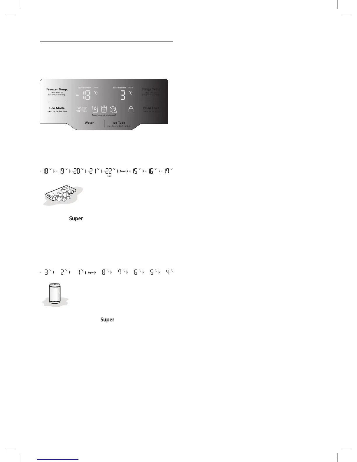 When you want faster freezing, push the Freezer Temp.