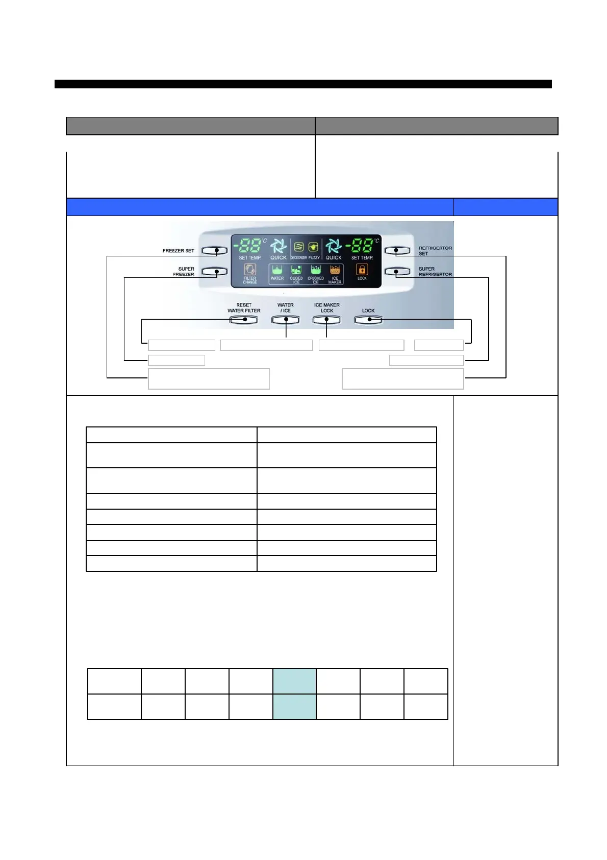 Lock buttonWater filter reset Dispenser select button Ice maker lock button