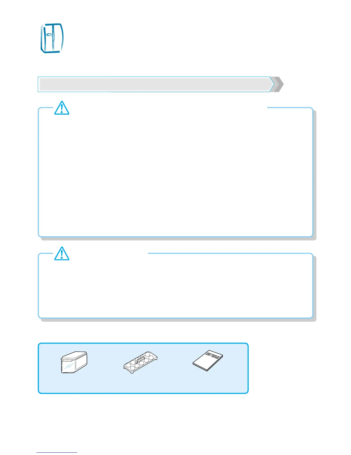 ※ If you hear strange noise or strong chemical odor or find smog etc. from the refrigerator after