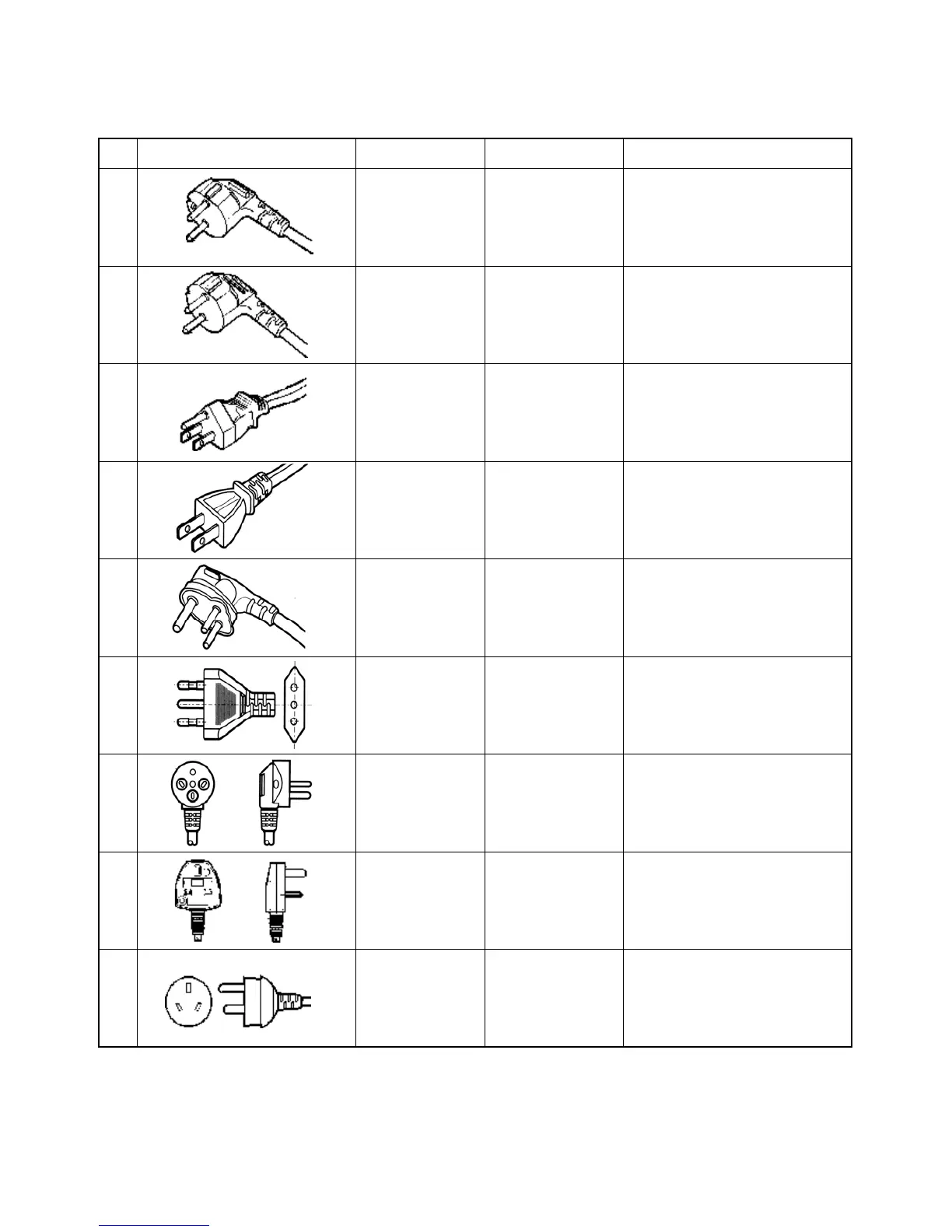 NO SHAPE OF POWER CORD PART CODE DESCRIPTION REMARK