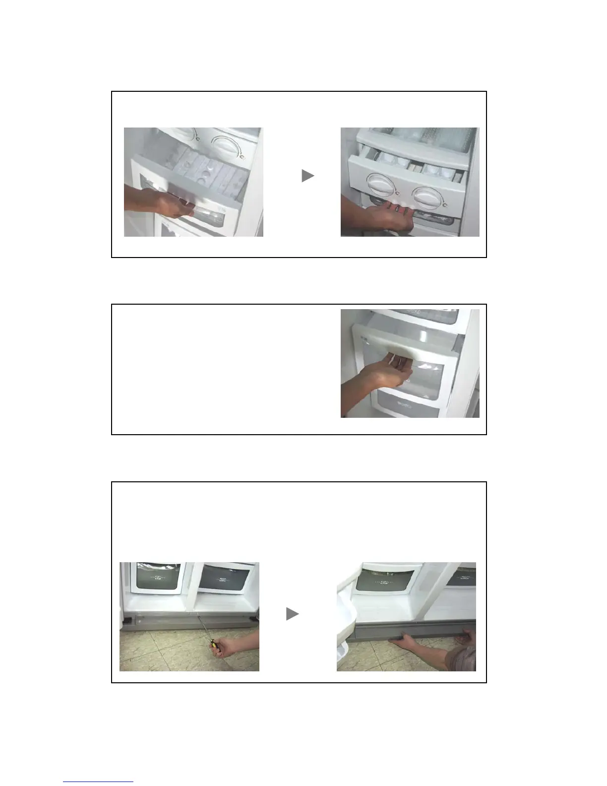 * Pull forward Ice case and lift up a little to remove then pull Ice cubes maker.