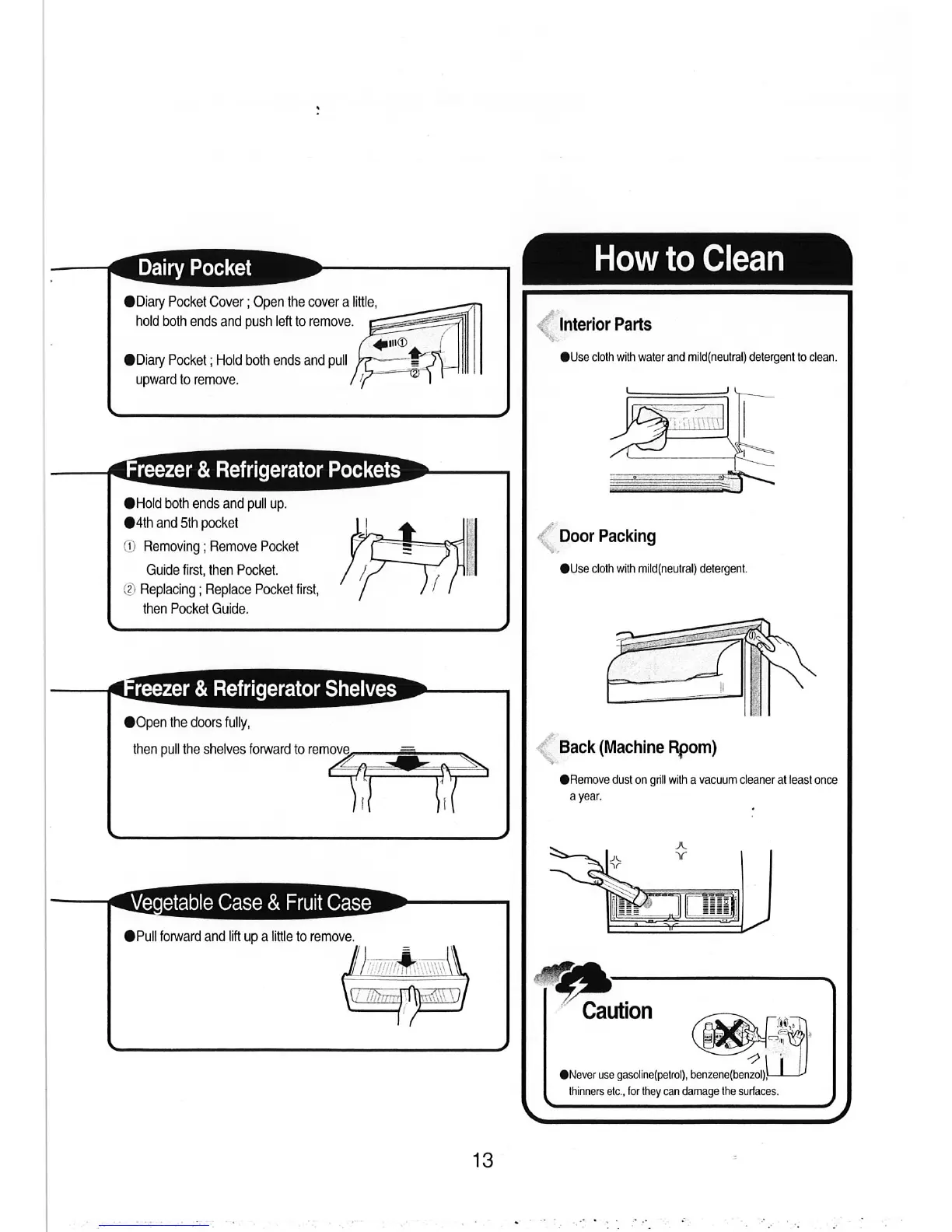 Daewoo FRS-2431 - How to Clean; Interior Parts Cleaning; Door Packing Cleaning; Back (Machine Room) Cleaning