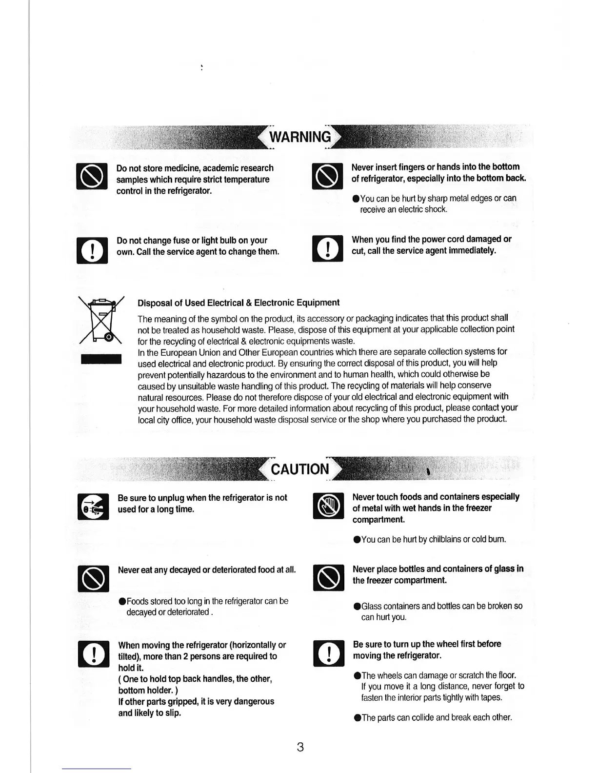 Daewoo FRS-2431 - Disposal of Used Electrical & Electronic Equipment; CAUTION