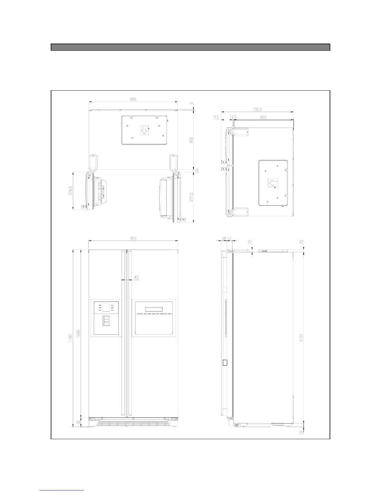 Daewoo FRS-U20EF. - External Size (U20 FF.;U20 FG. Series)