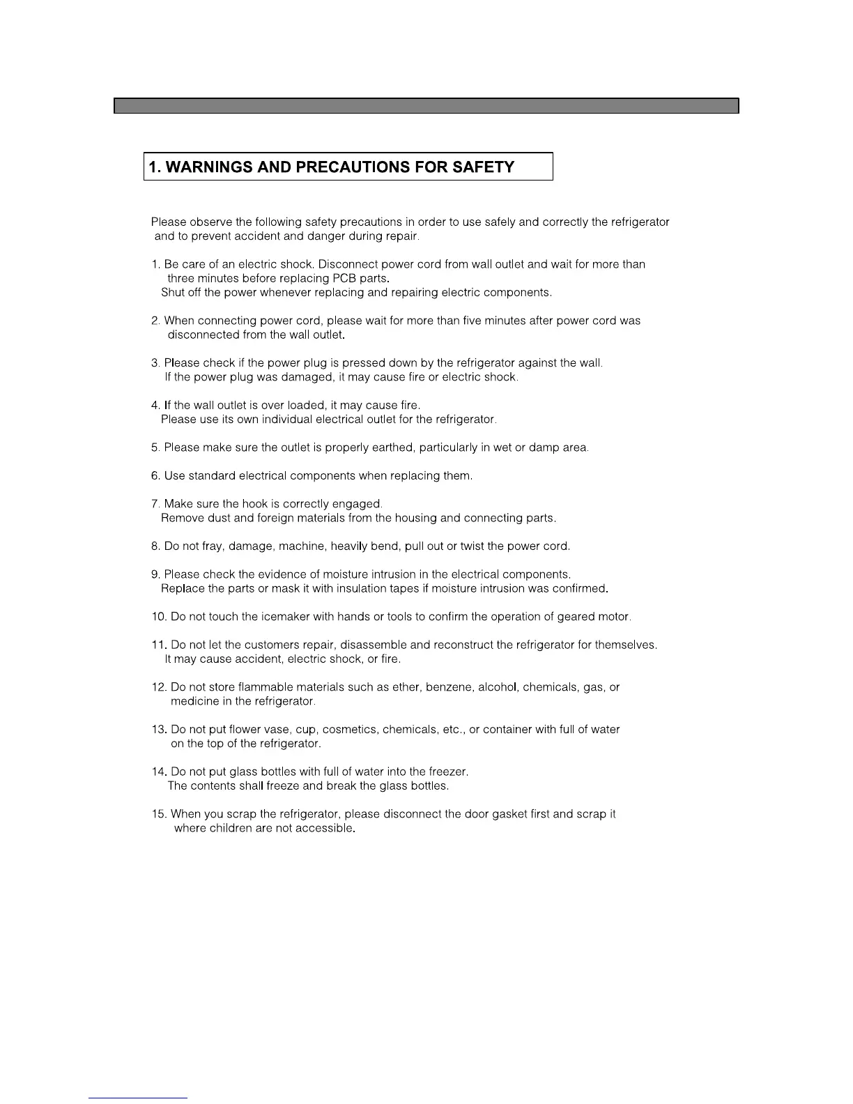 Daewoo FRS-U20FF. - 1. WARNINGS AND PRECAUTIONS FOR SAFETY