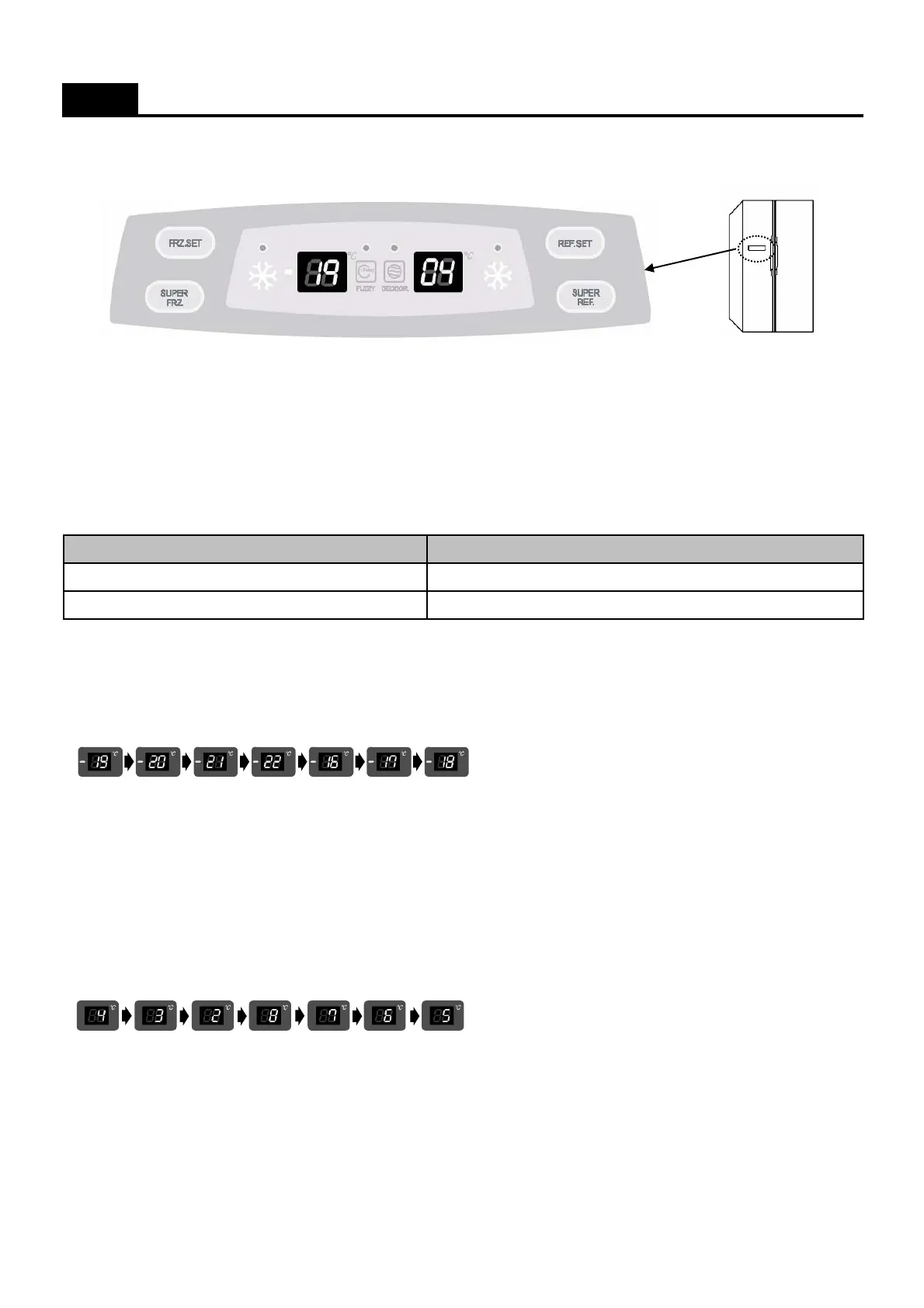 - Every time you press the REF. SET button, the setting temperature changes below order.
