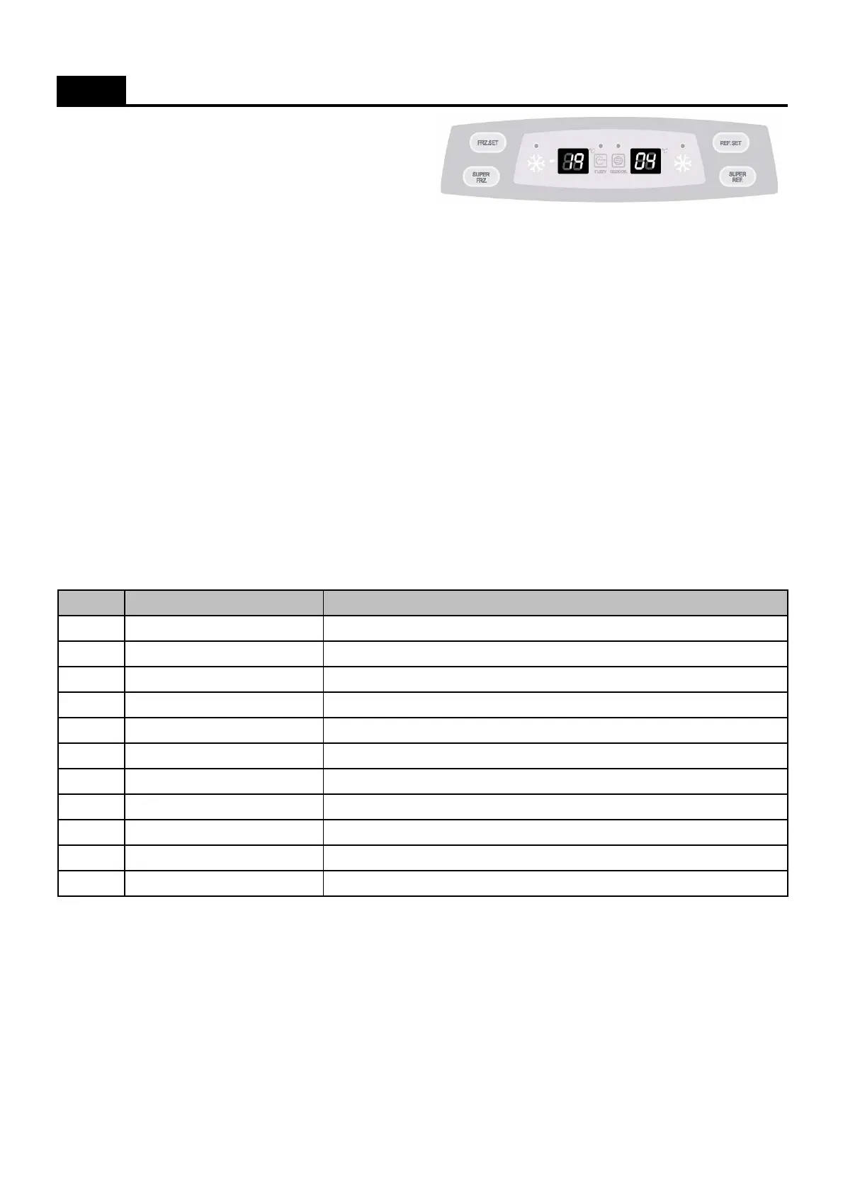 ; Every time you press the FRZ. Set button, the following value display.