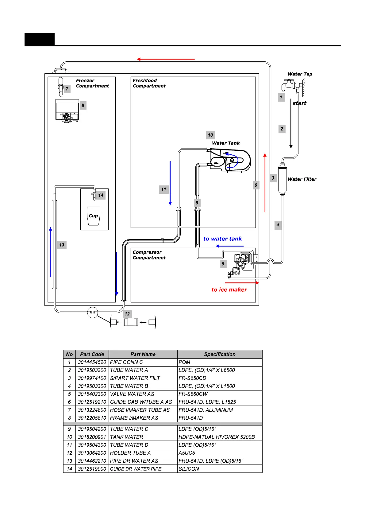 Daewoo FRU-571 Series - Water System for Dispenser Models