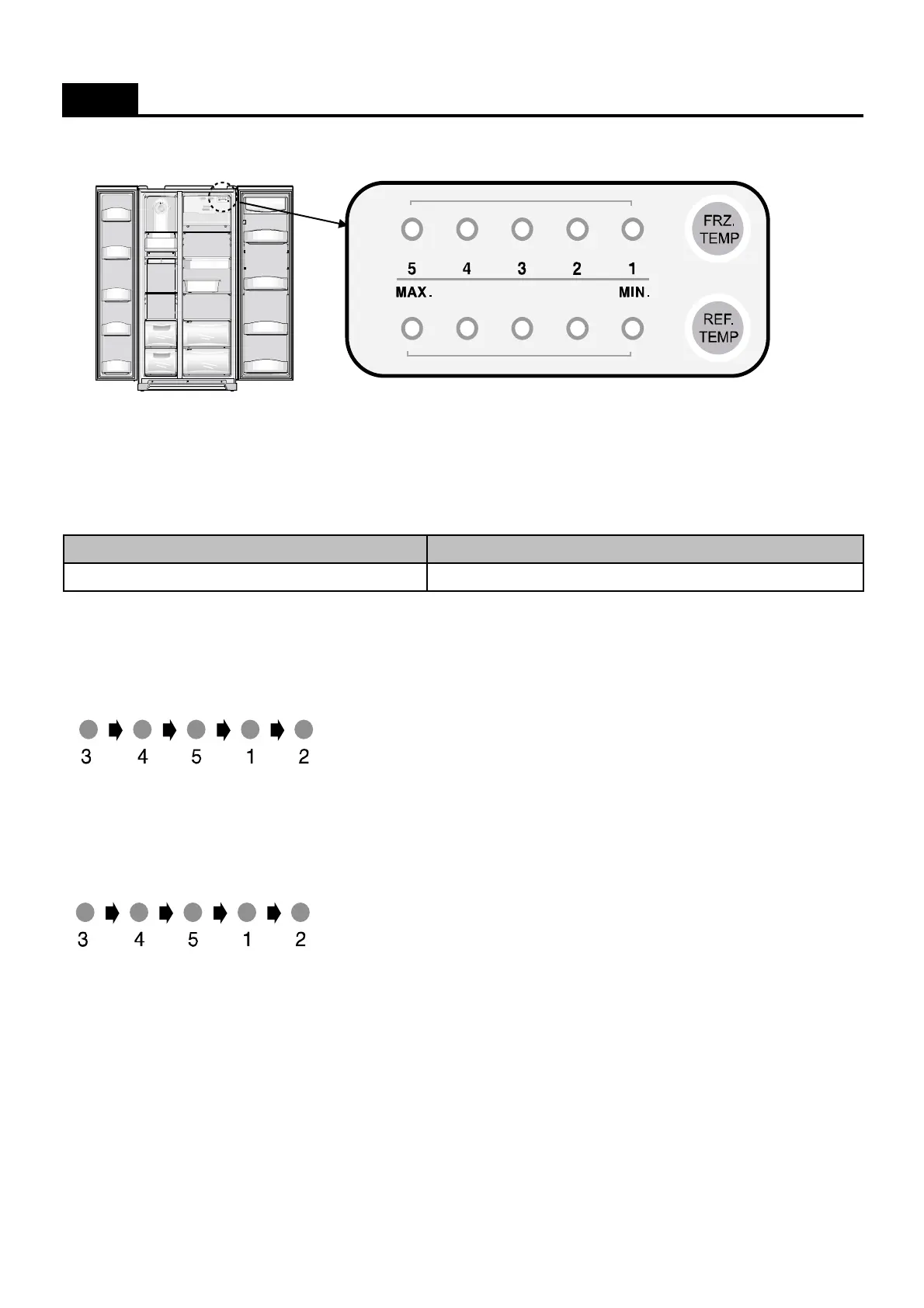 Temp. Display (Set Temp.) Initial Mode : Freezer / Refrigerator set medium ( 3 / 3 )